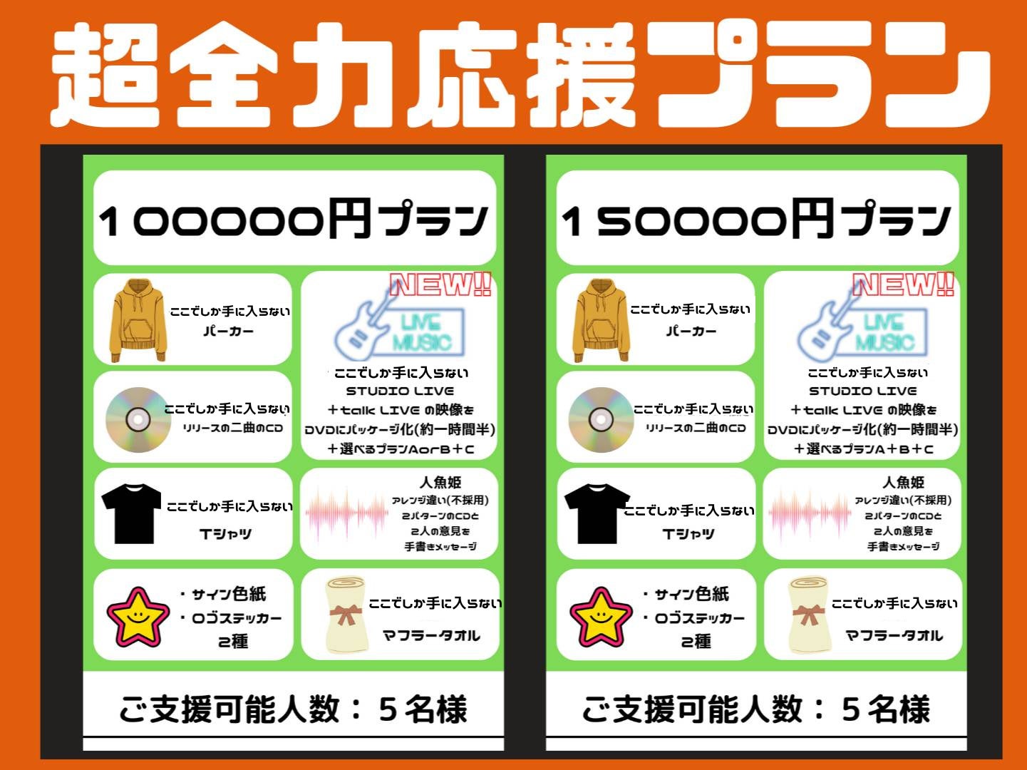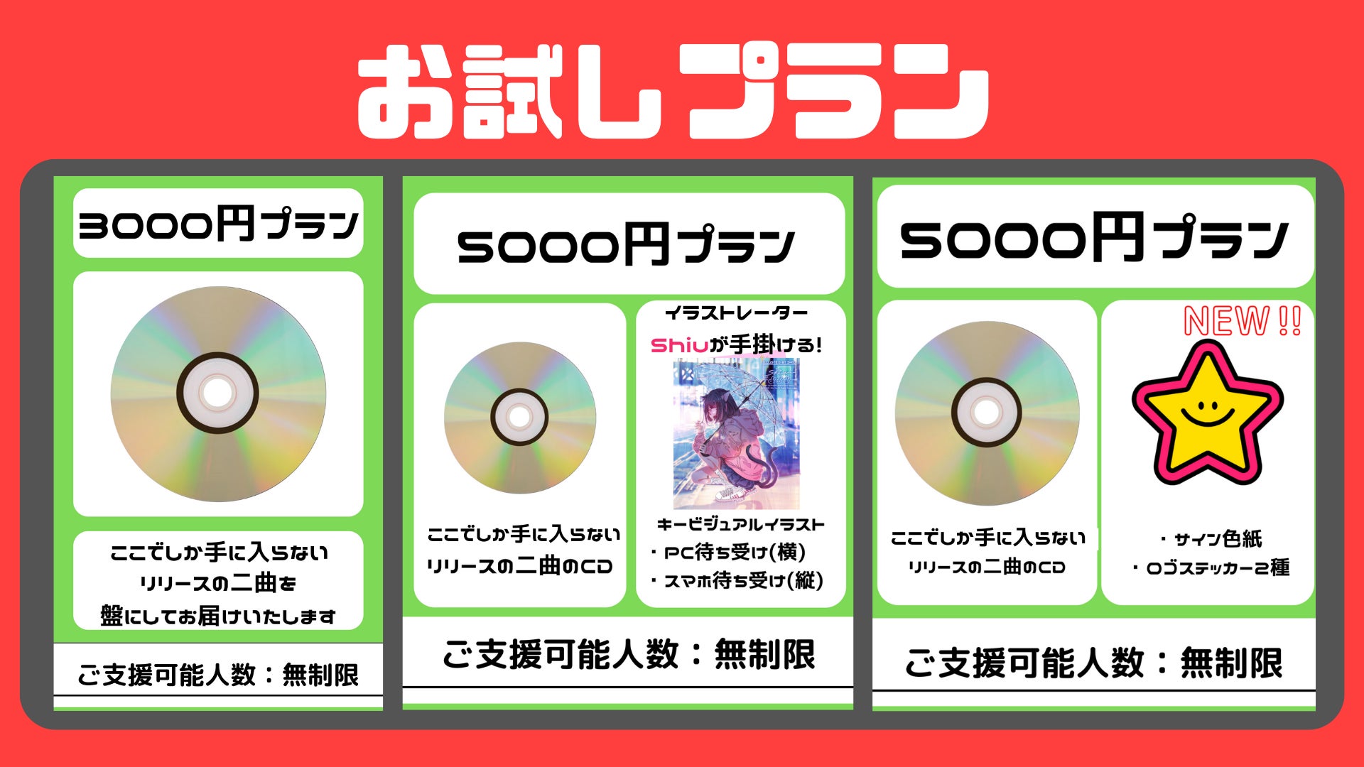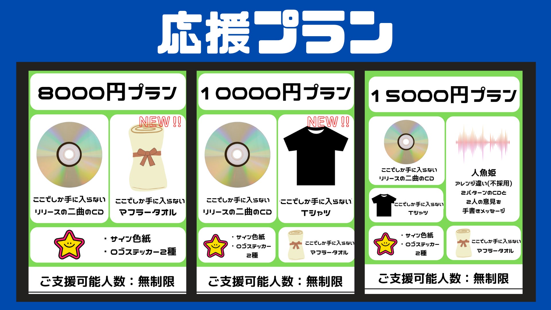 皆様から頂いた支援金は全て、楽曲の制作に関わる費用及び各種グッズの制作、リターンの送料、CAMPFIRE手数料に大切に使わせていただきます。