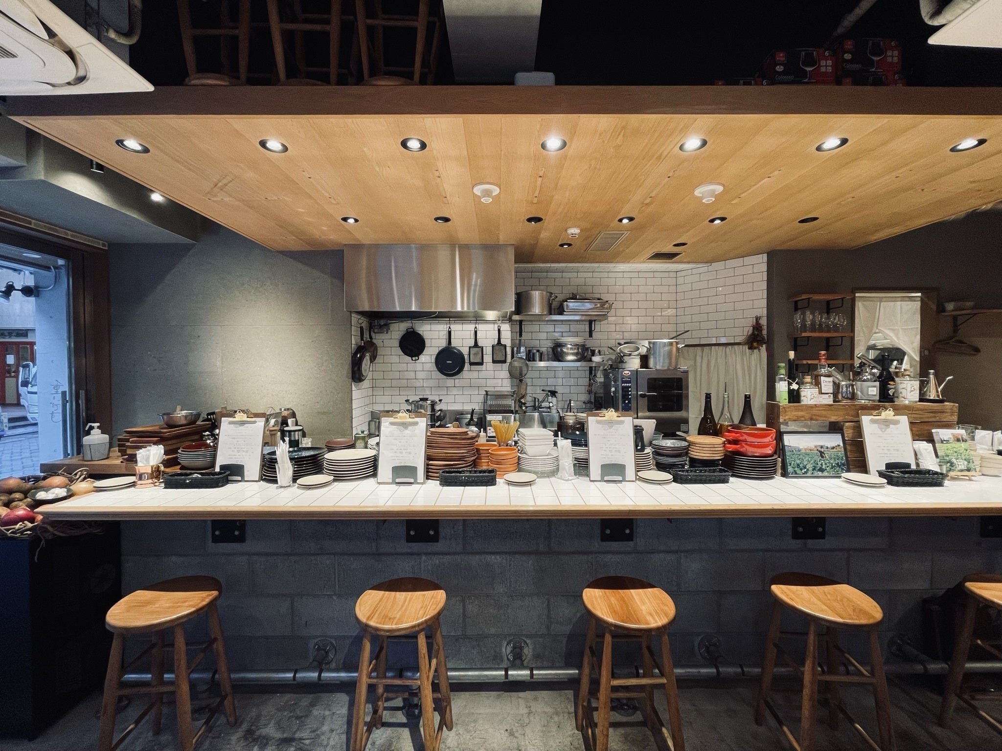 「昨今の“DX化”に対するアンチテーゼではないですが、オーダーはお客様に手書きでご記入頂く予定です。その際にテーブル番号ではなく、“ニックネーム”を書いて頂き、カウンター越しにオーダーをキッチンへ渡してもらいます。商品が出来上がりましたら、カウンターで飲んでいる別のお客様にニックネームを伝え、その商品をオーダーしたお客様へ運んで頂きます(笑)。つまり、自分がオーダーした商品をニックネーム呼びながら別のおj客様が運んでくるというワケです(笑)。そんなキッカケでお客様同士が気軽に楽しく繋がって頂けたら嬉しいですね。」