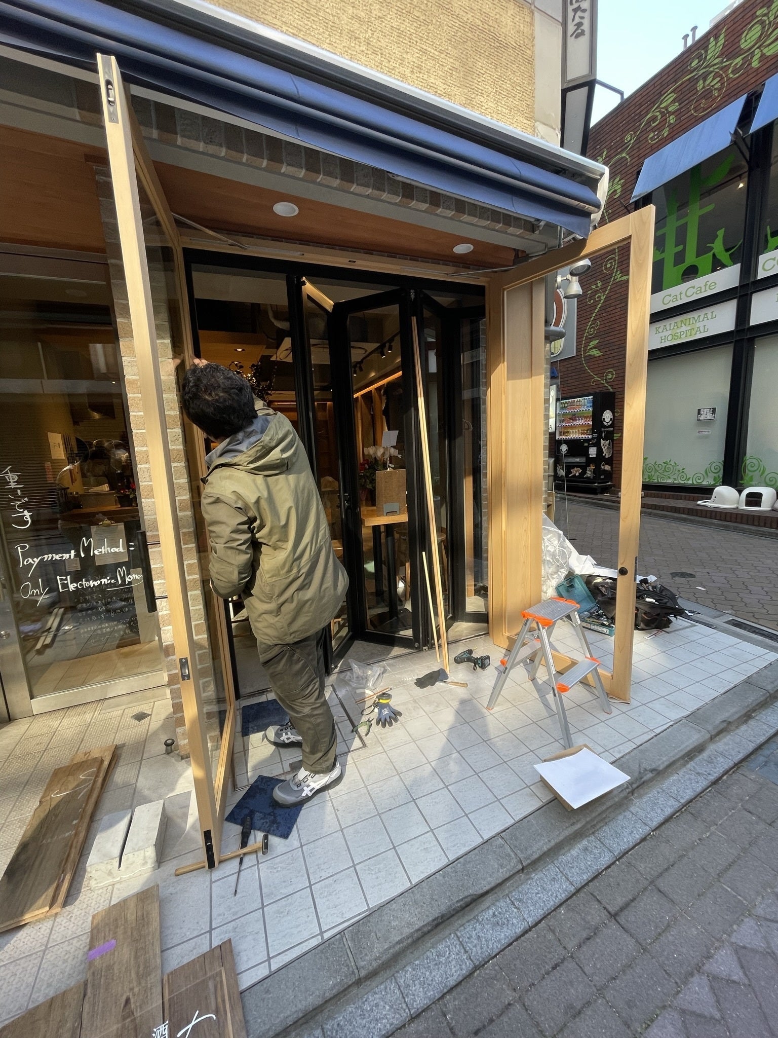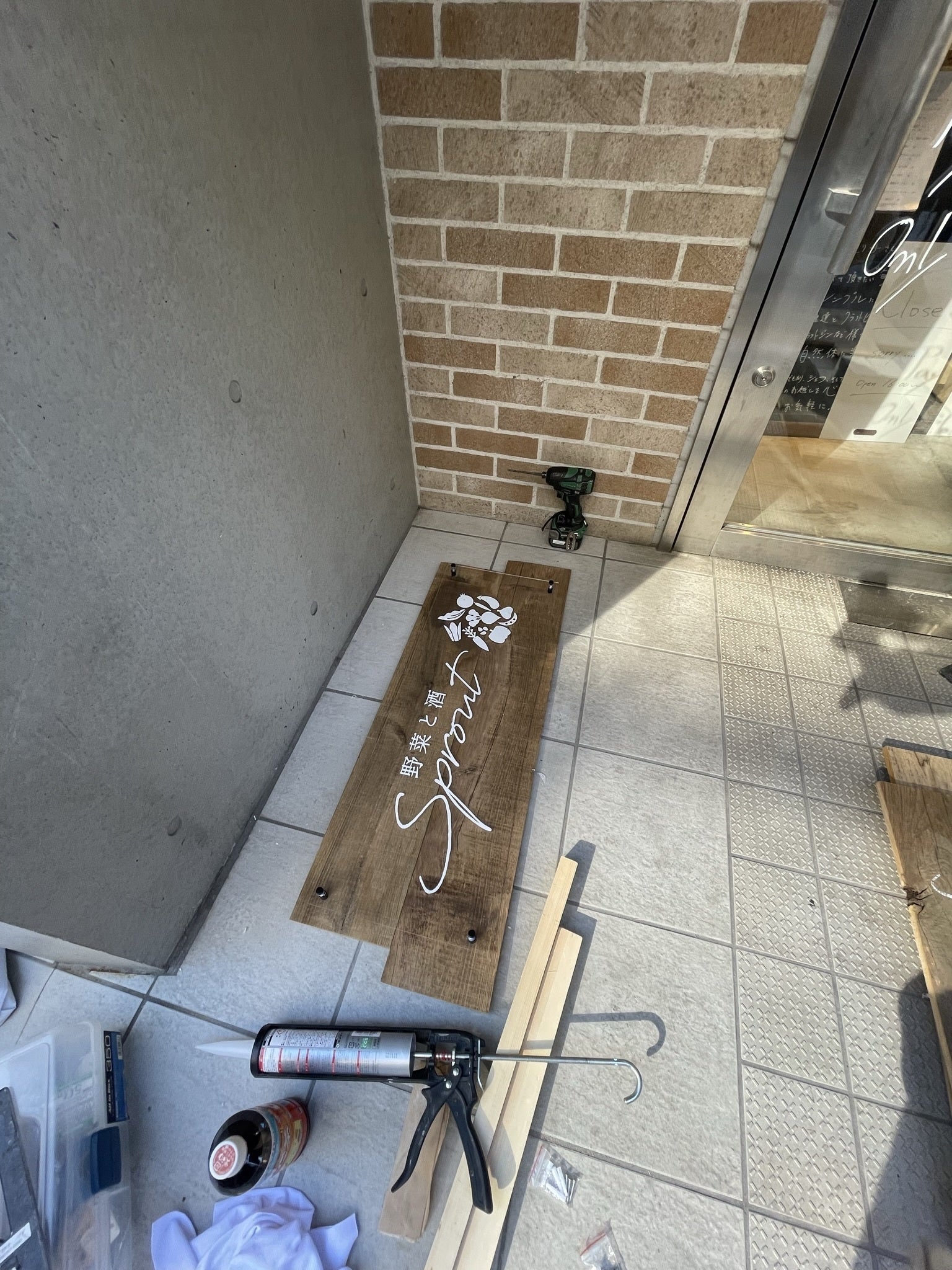 作戦B“古材の上に透明看板を貼る”作戦を決行しました!