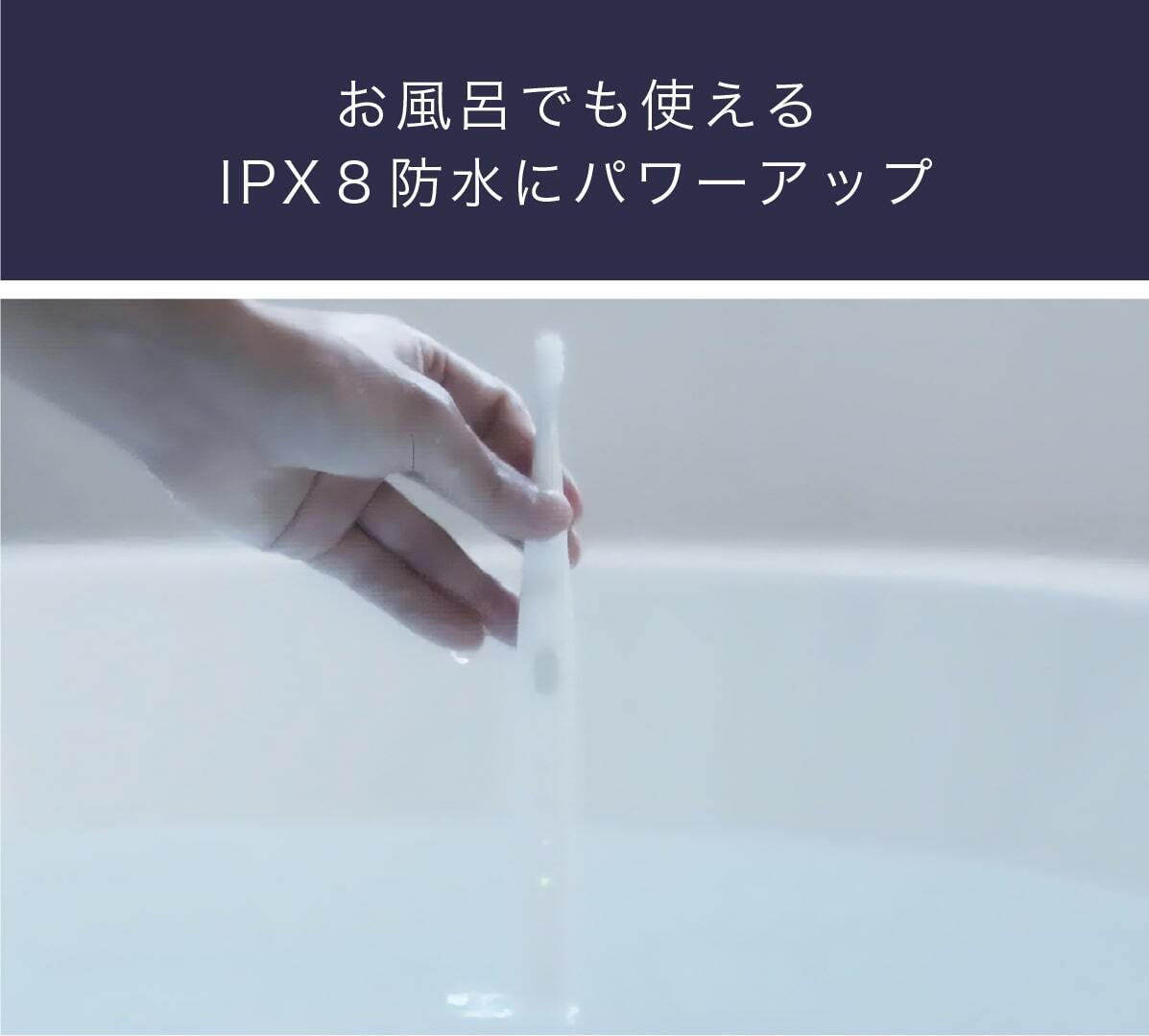 入浴中に歯を磨くには、防水機能の他に水滴などで磨く手が滑らないようにする必要があります。ミニマルソニックは「粒子グリップ」を搭載し、入浴中の歯磨きに最適です。