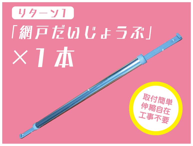 A:網戸の横幅は62cm~95cmであれば、支柱部分がスライドしてフィットします。網戸本体のタテ枠に厚さ4mm、深さ5mm以上の凹みがあることも必ず確認してください。この凹みに【網戸だいじょうぶ】の両端のフック部分を引っかけます。