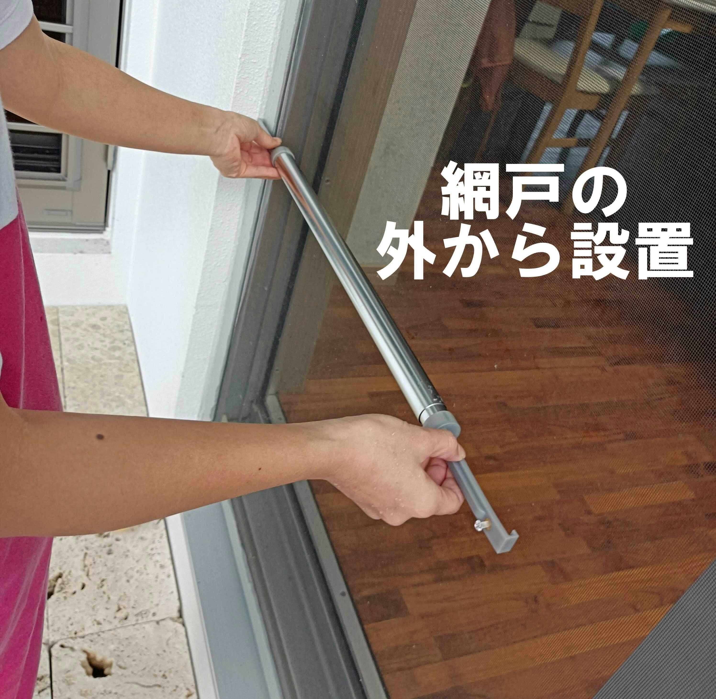 ②【網戸だいじょうぶ】を取り付けるのは、網戸の外側からとなります。庭やベランダに出て設置します。