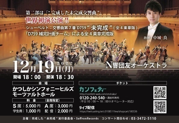 このコンサートを契機に、先ずは日本にある数百のオーケストラに演奏して頂きたい。そして、アジアへ・・・。更にシューベルトの生地ヨーロッパで、この『完成した”未完成”』が響き渡る事を夢見て、活動を続けて行きたいと思います。