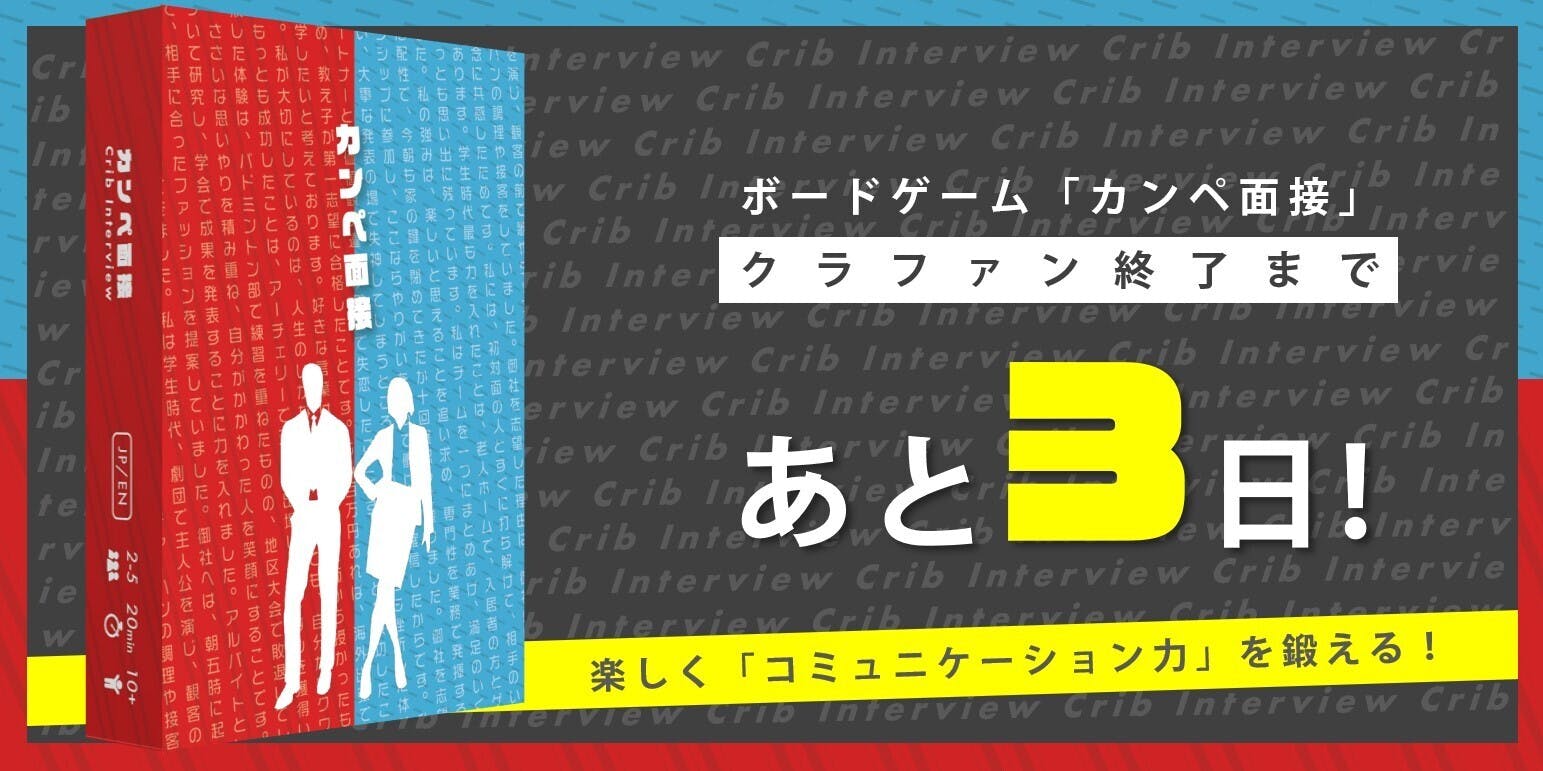 「カンペ面接」は、手札の組だけで面接の受け答えをするボードゲームです。面接力、ひいては対人関係全般に欠かせないコミュ力を、遊びながら鍛えることができます。