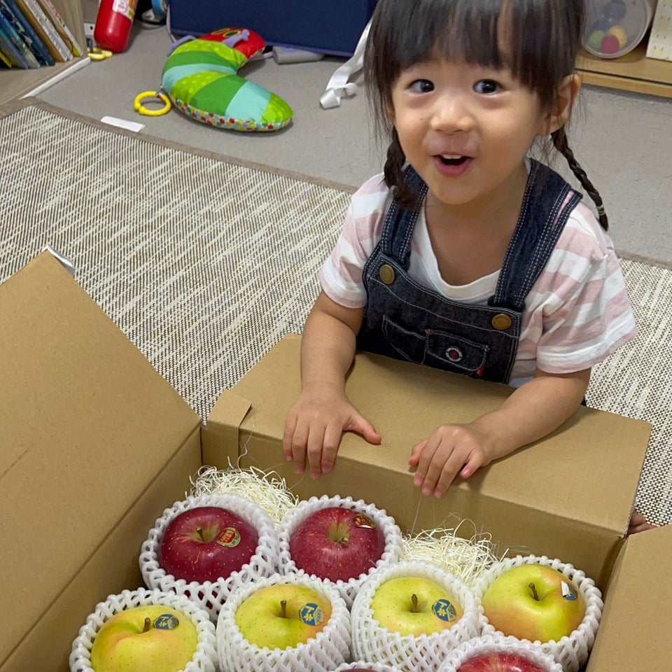 鮮烈なリンゴの香りに、娘のテンションがあがります(笑)!