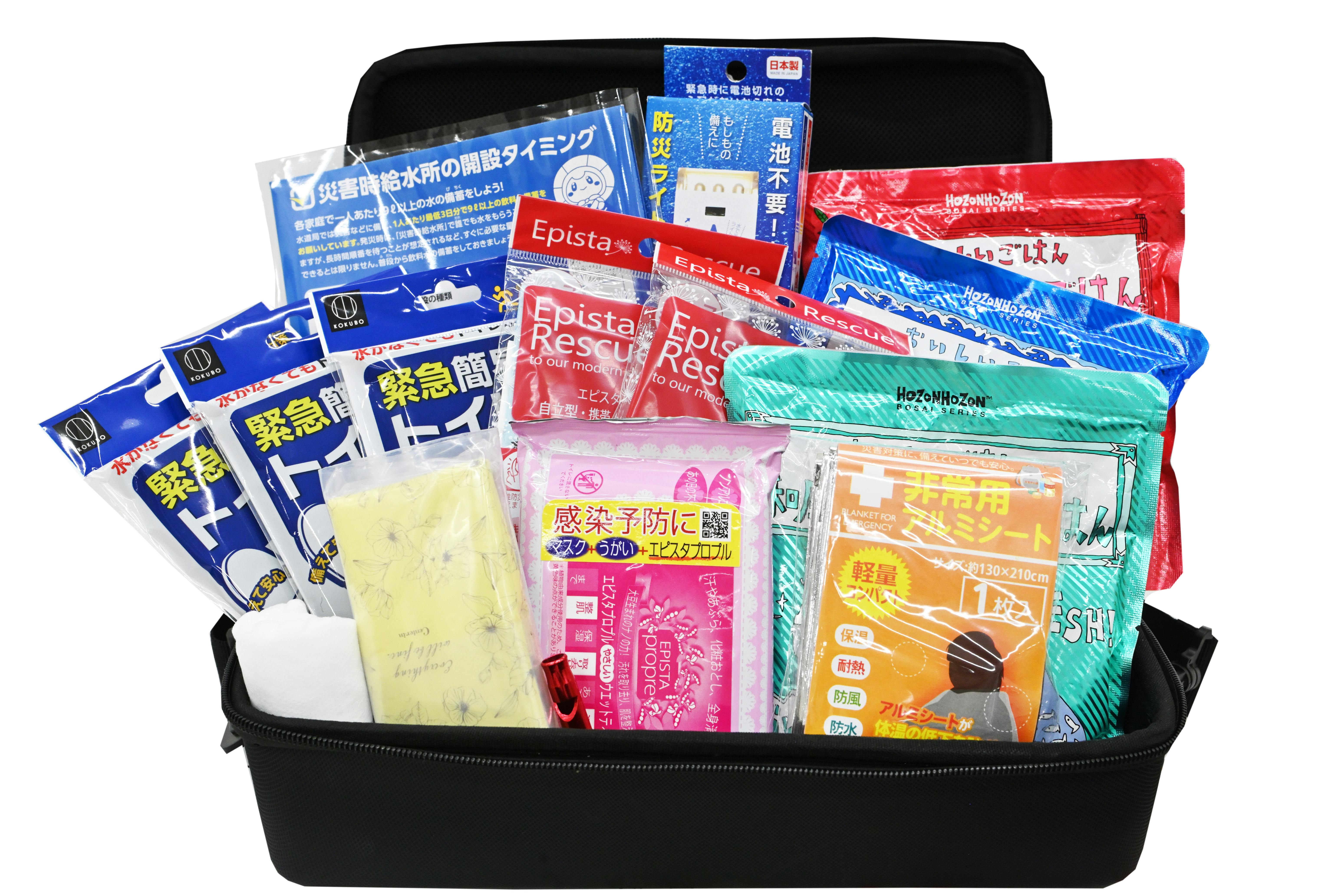 ※画像の備蓄品はイメージになります。画像と同等の防災用品がはいります)