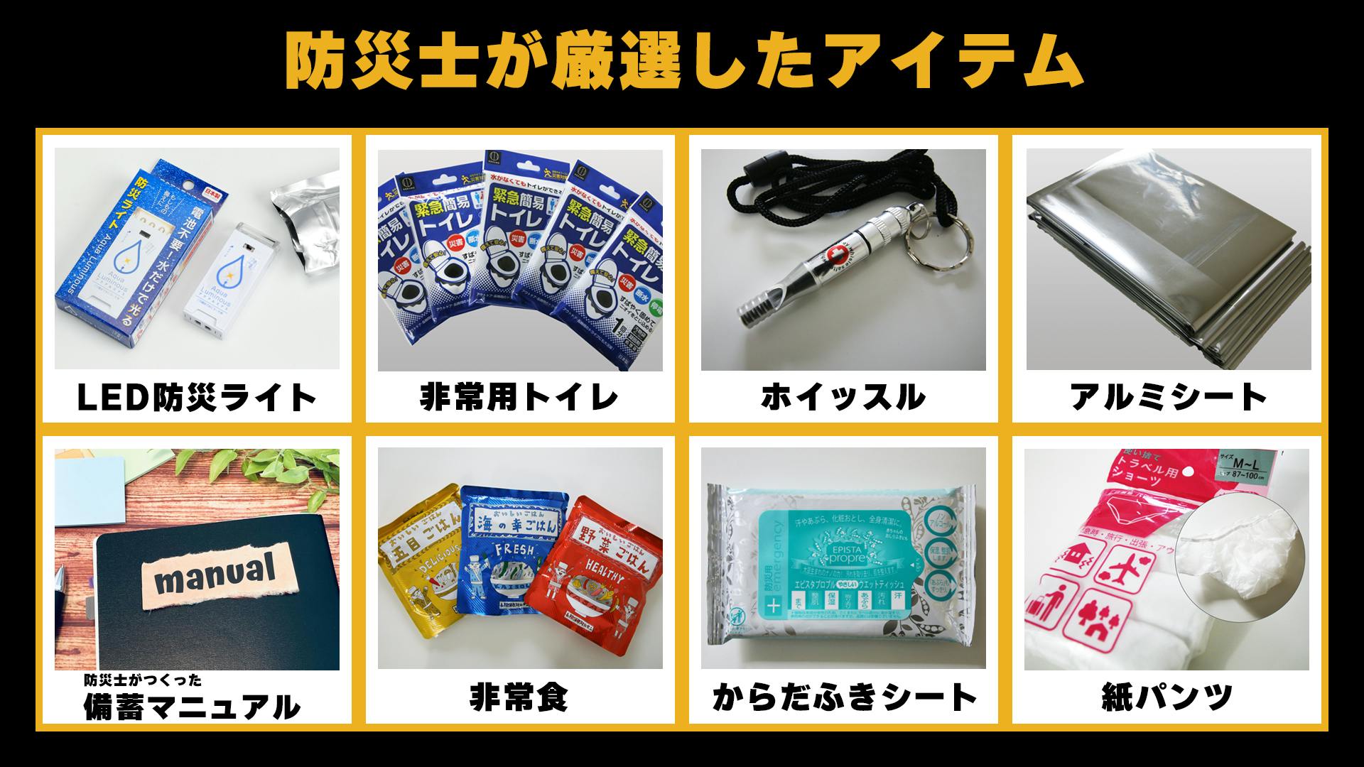 リターン品の中に入っているアイテムは、弊社の防災士たちが厳選しました。
