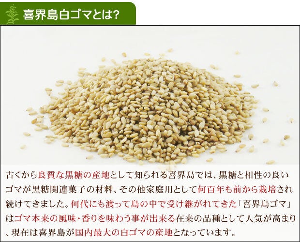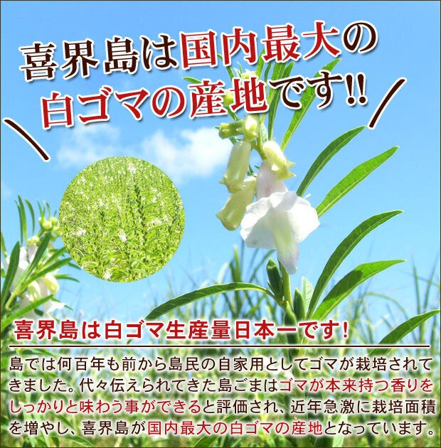 喜界島で太陽を浴び、ミネラルたっぷり、希少な香り高い『喜界島産白ごま』をぜひ楽しんでいただければと思います。
