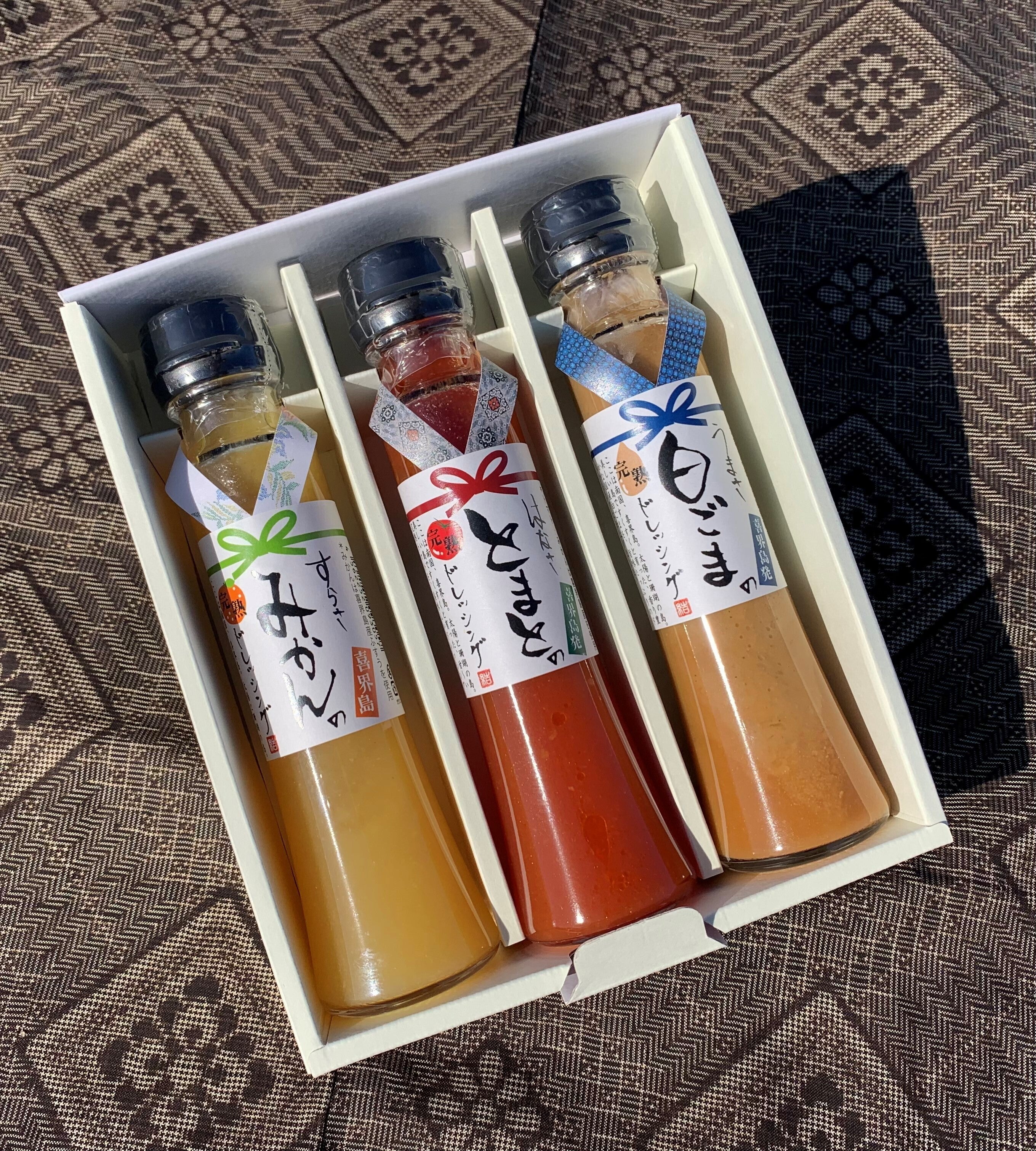 ・うまさ白ごまのドレッシング ・すらさみかんのドレッシング ・はなさとまとのドレッシング