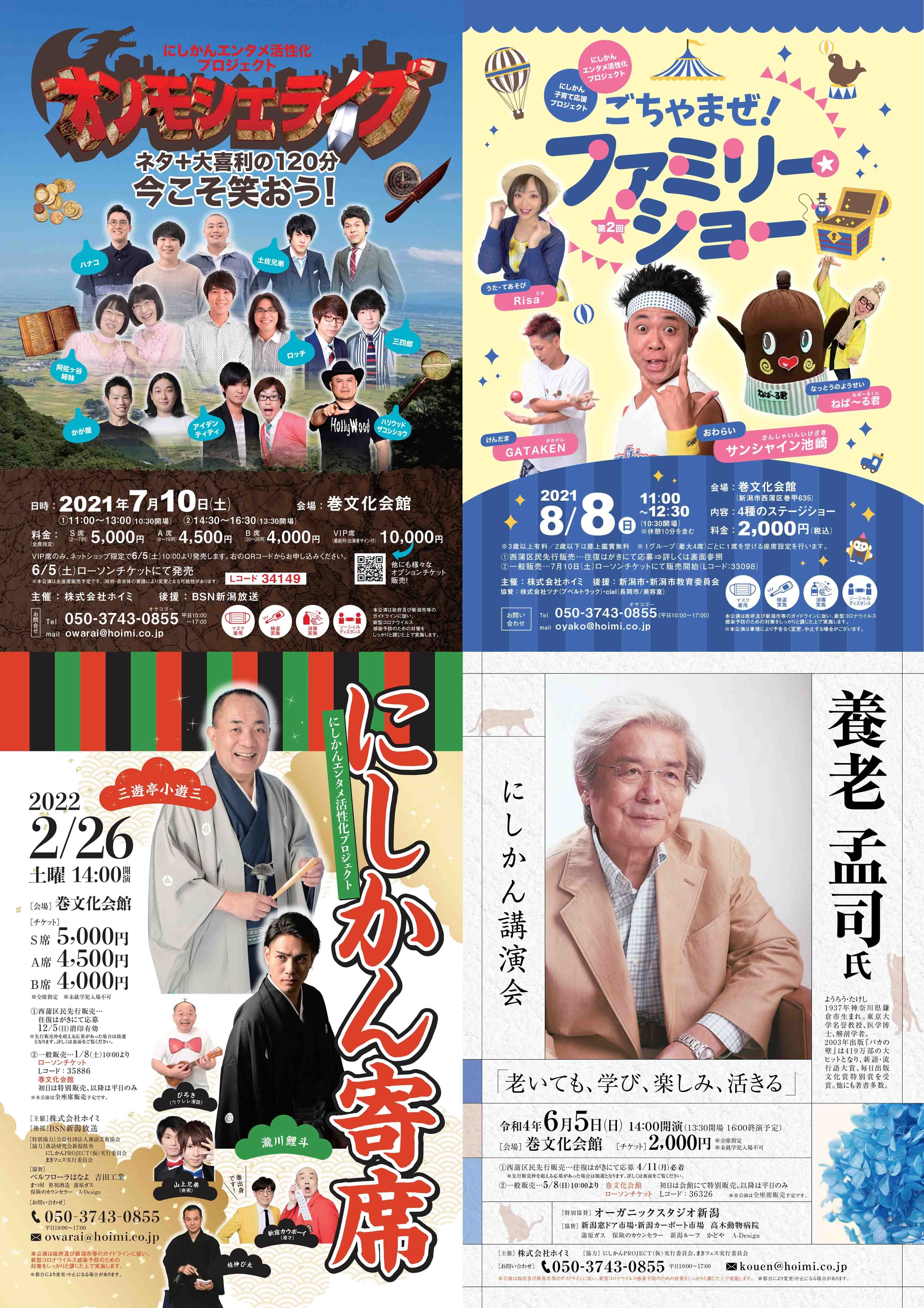 2021年5月、地元を盛り上げるべく、【にしかんエンタメ活性化プロジェクト】を立ち上げ、巻文化会館で様々な主催興行を始めました。