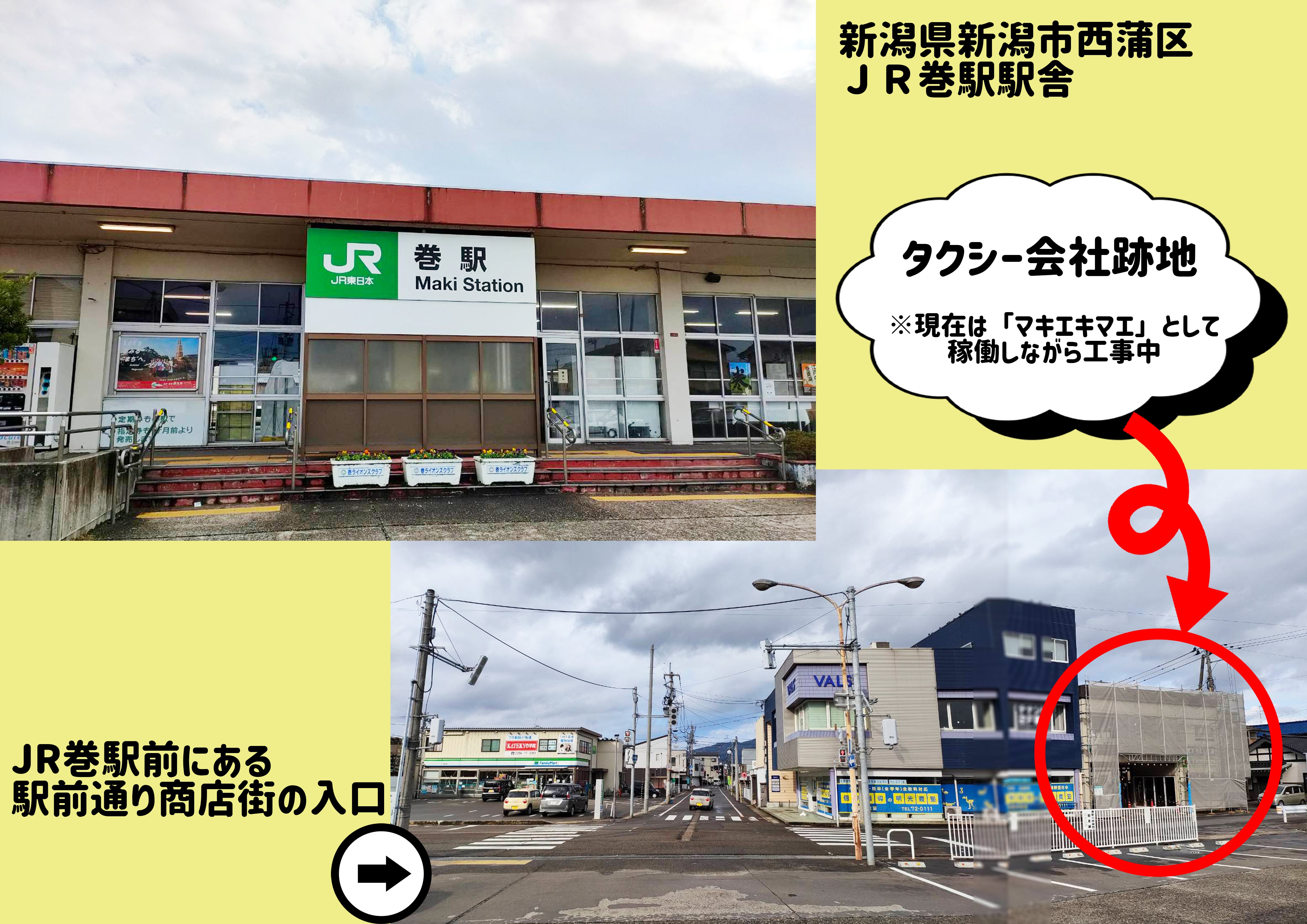 そんなめっきり寂しくなってしまった巻駅のすぐ目の前に、15年以上使われていないタクシー会社の営業所がありました。