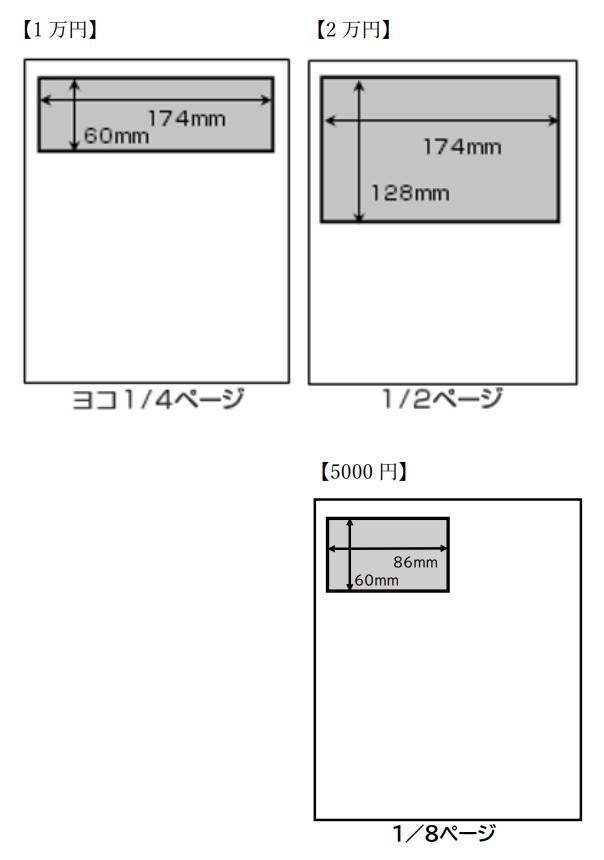 ※1 「広告掲載」をご希望の方は、広告デザインをメールにてお送り下さい。サイズは以下の通りです。
