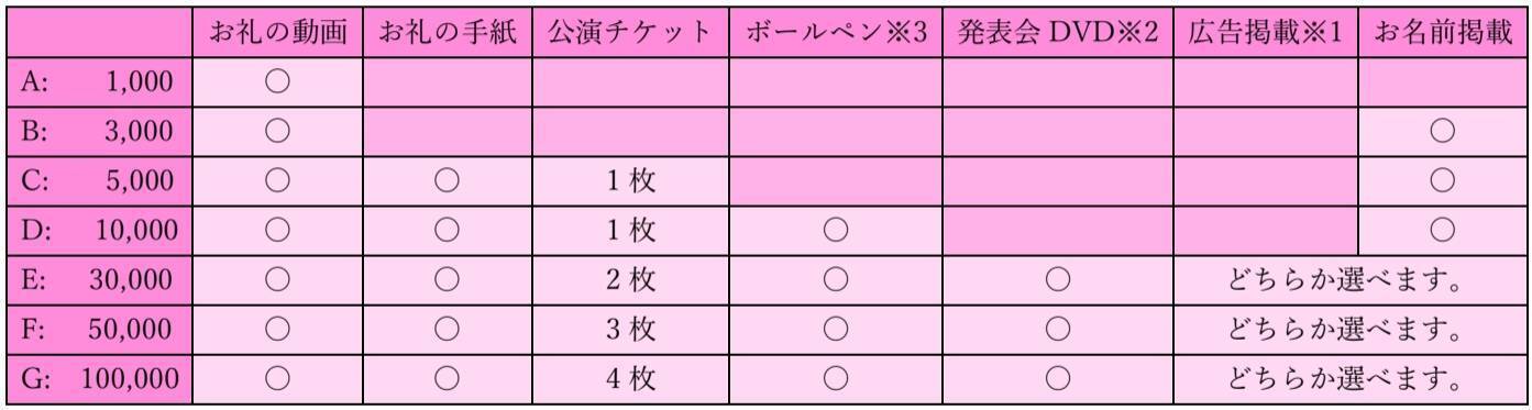 コースに応じて様々なリターンをご用意させて頂きました。