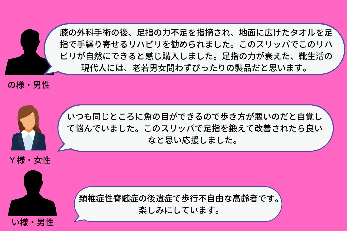一部の人のお声ですが、まだ他にも、足の裏が筋肉痛になるみたい!・・・とか、運動不足の私にはピッタリです!・・・とか、嬉しいお言葉も沢山いただいております。