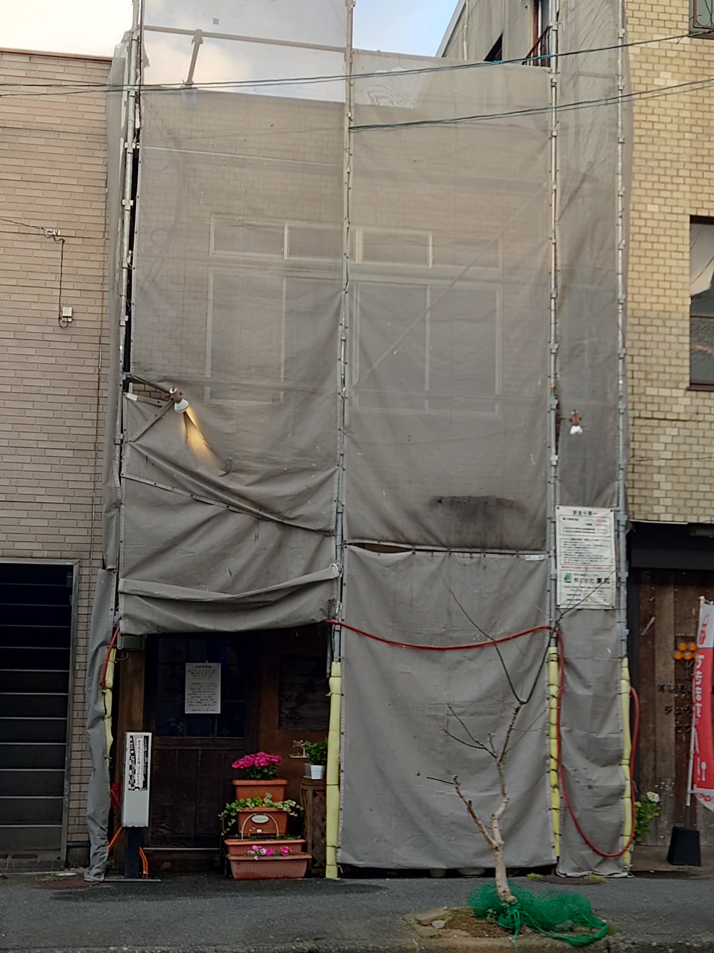 約3年前の強風・豪雨で店の屋根・外壁が剥がれたため、足場を建てて営業してましたが、危険な箇所が発生したため、今は通常営業が出来ずにいます。