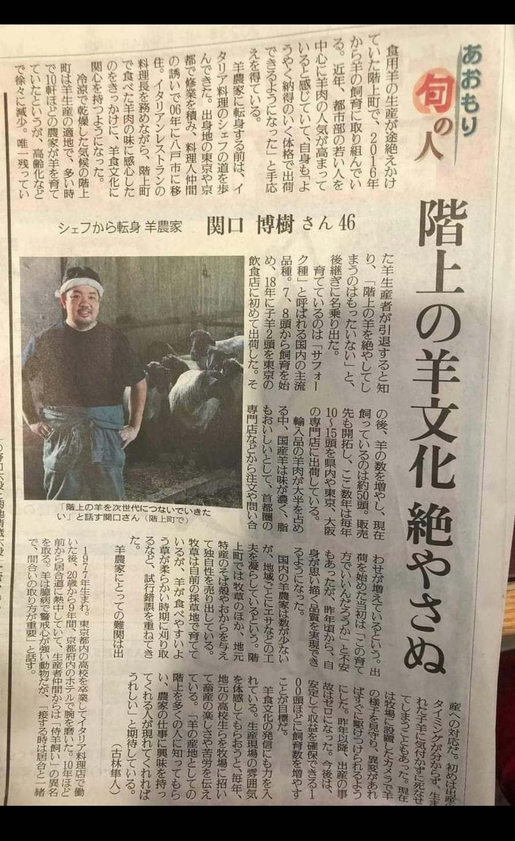 国内消費量の1%でしかない国産羊、青森県階上町で絶滅の危機にあった羊農家を引き継ぎ 消費者と共に産地を作り盛り上げる「南部羊プロジェクト」を立ち上げ、希少な国産羊の産地を復活させる活動を行ってきました。