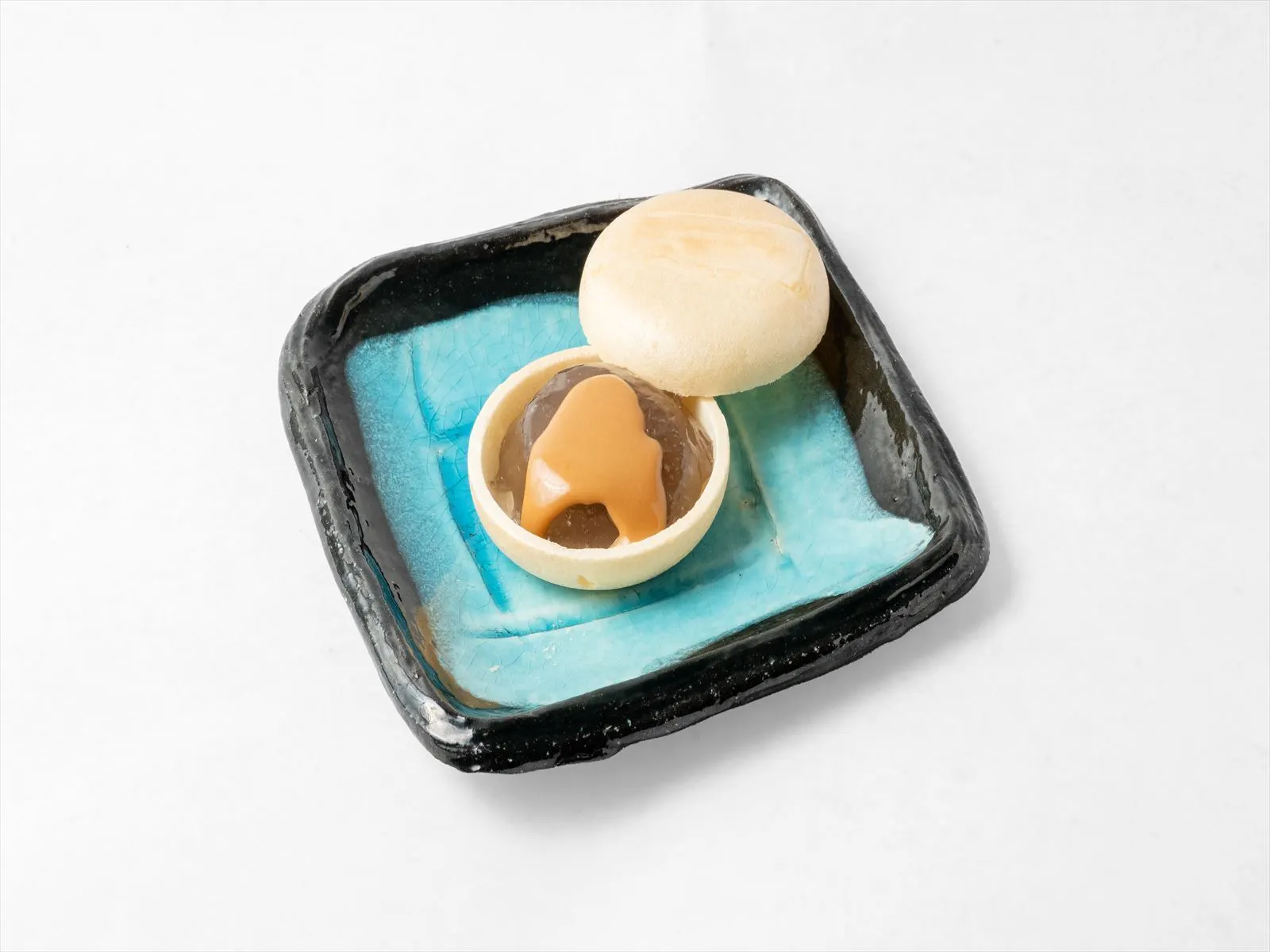 もち米100%のもなかの中に、黒わらび餅を入れ香ばしさが特徴のきな粉ペーストをかけてお召し上がり頂きます。