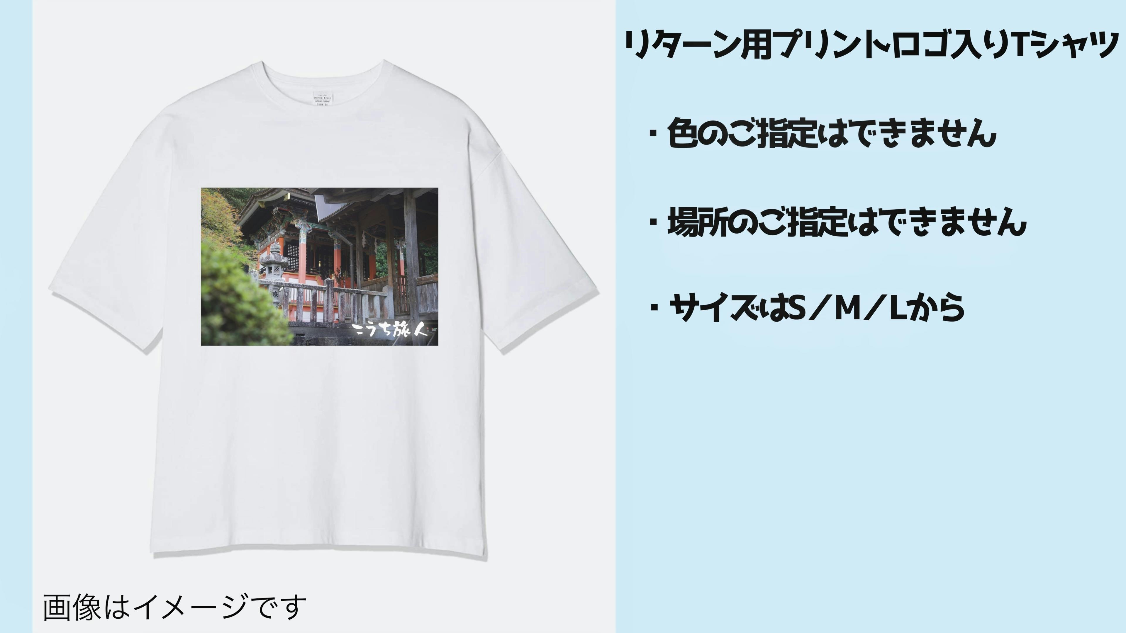 ②,高知県の観光地を撮影した写真をプリントロゴ入りしたTシャツを差し上げたいと考えております。