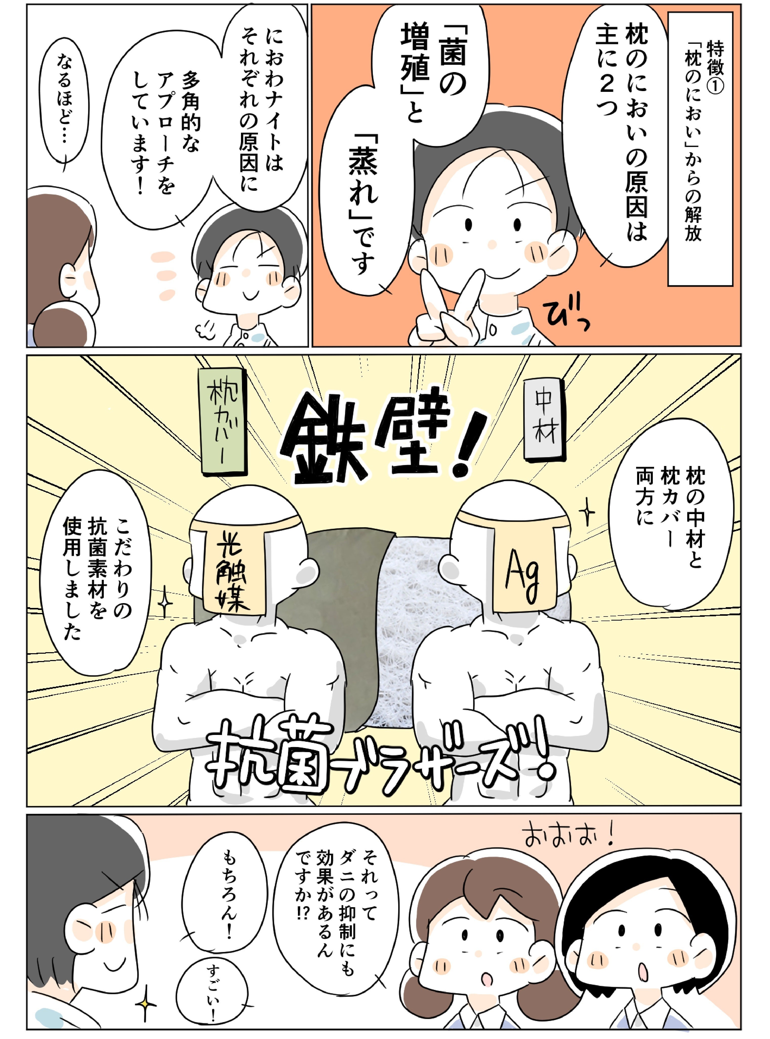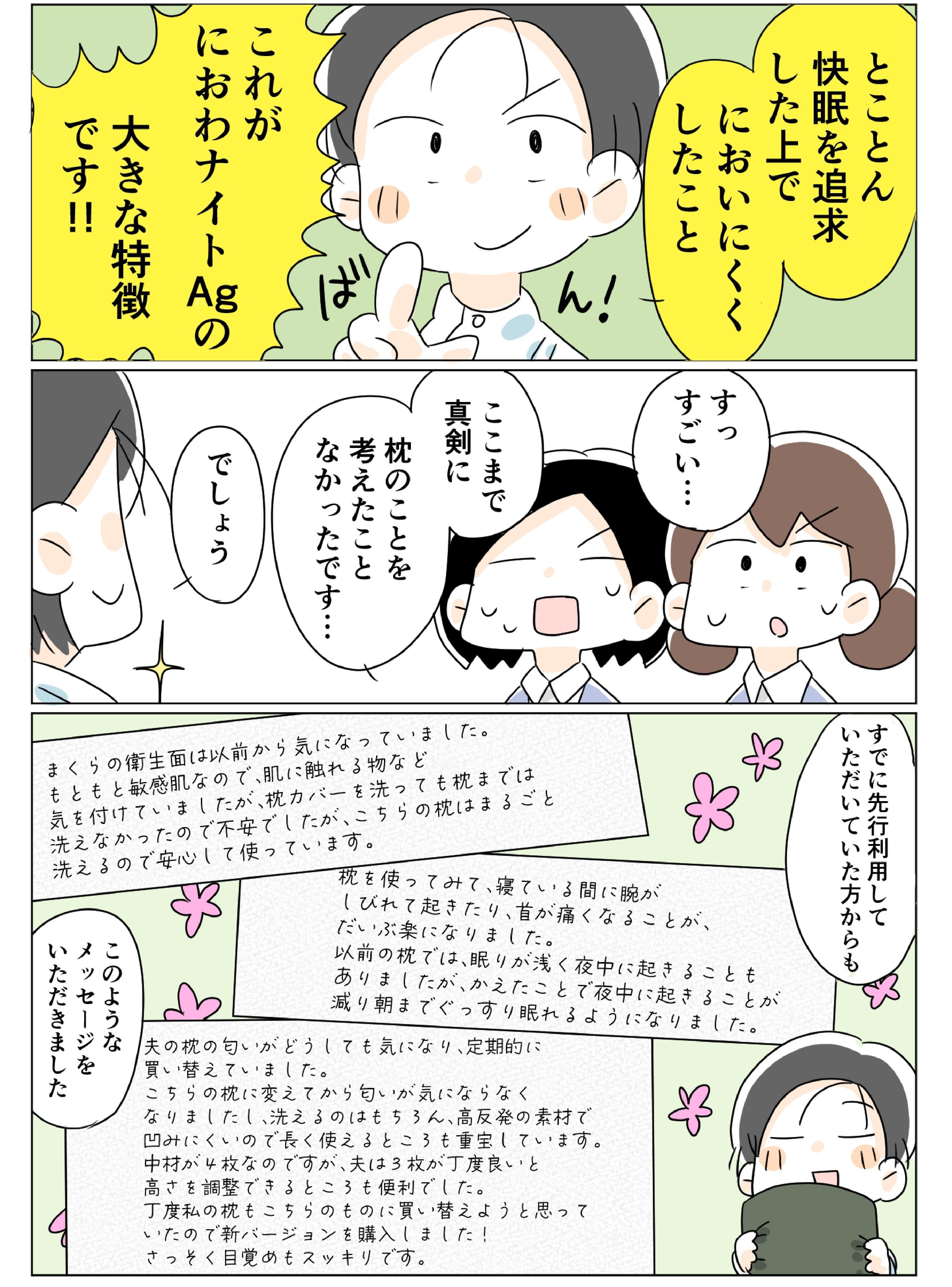 Q1. 洗える抗菌快眠枕「にわおナイトAg」の特徴を教えてください。