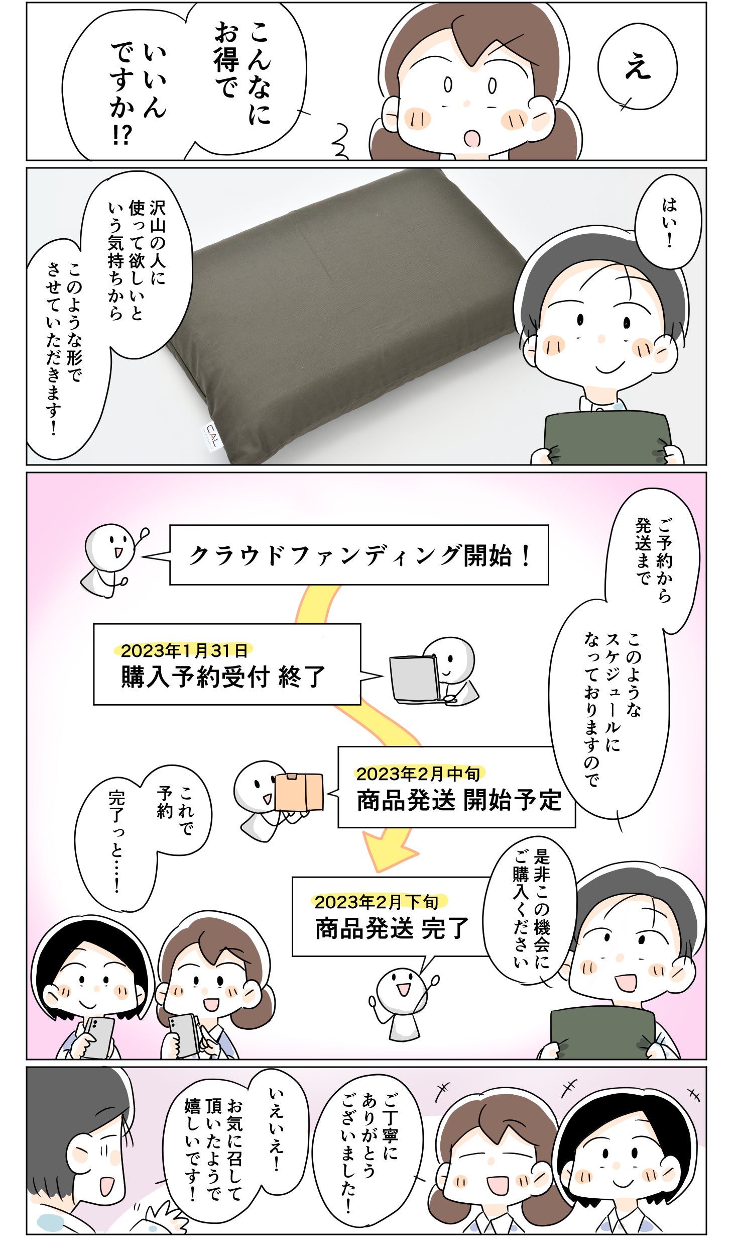 ただし、想定を上回る支援購入があった場合には追加生産が必要となるため、配送が遅延する恐れもございます。その際には、活動報告等でお知らせいたしますので、予めご了承ください。