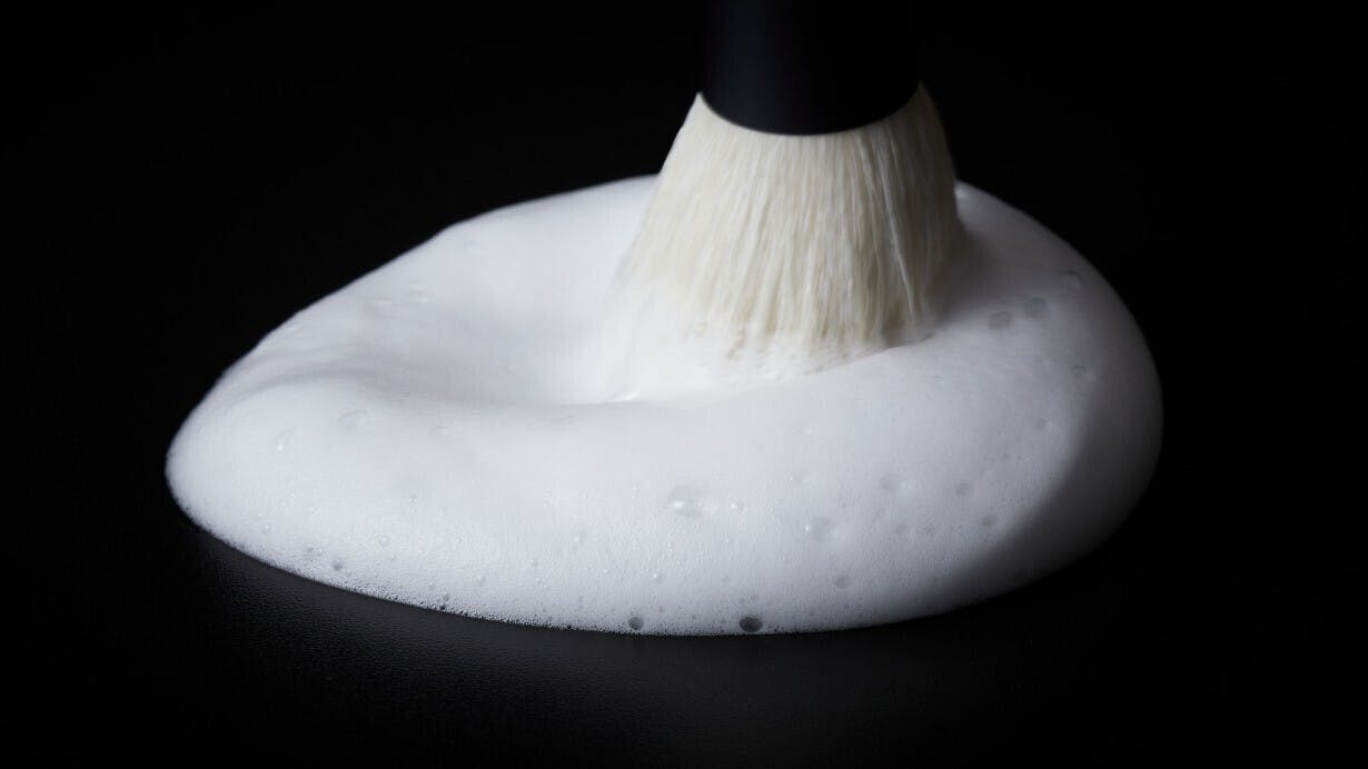 泡上でブラシをクルクル動かしながら、優しく軽く圧をかけながら動かします。
