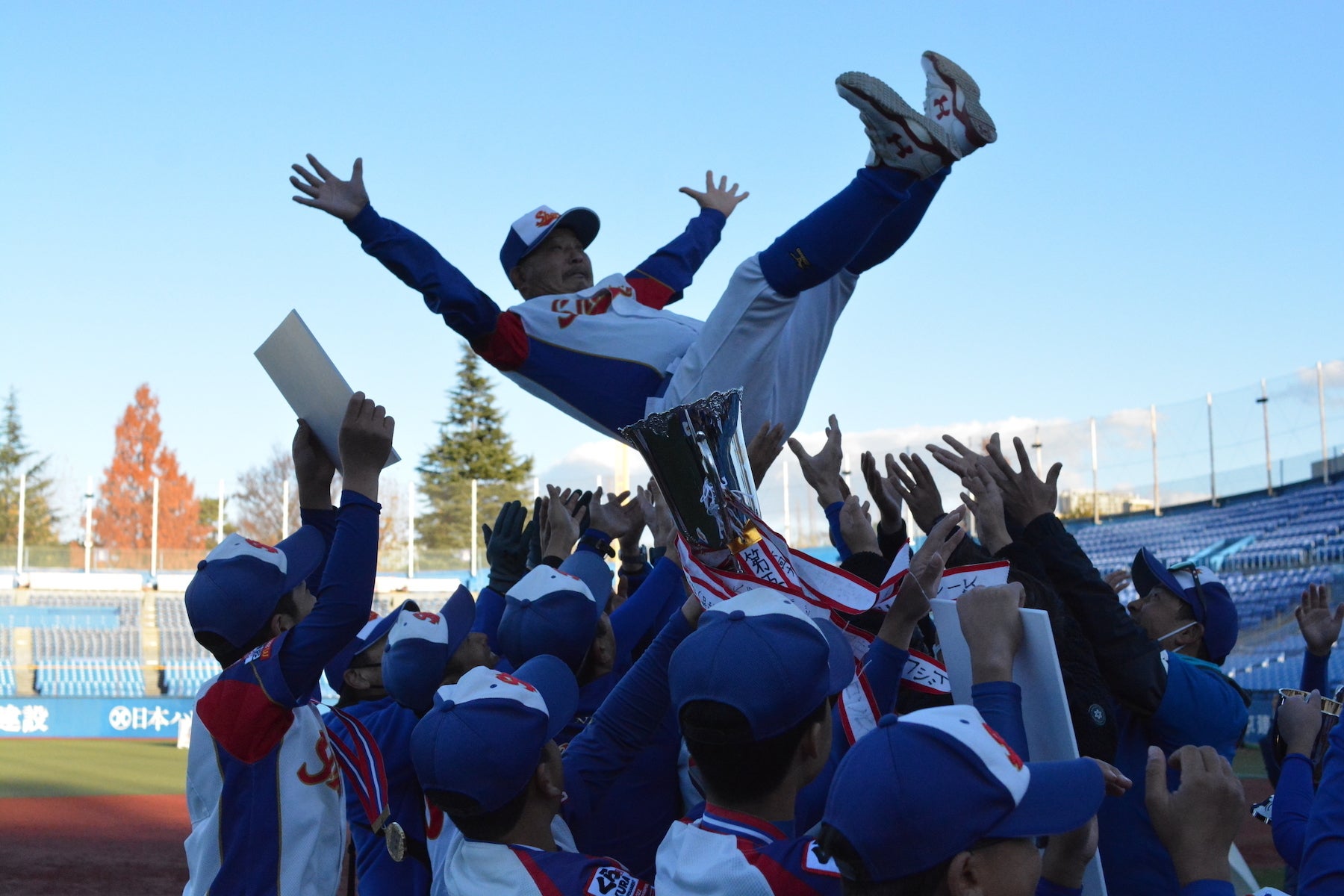 2022/12/19 15:35皆様の応援のおかげもあり全国制覇することが出来ました。そして神宮球場で監督を胴上げさせていただきました。OBの方々が積み上げて来てくださったものを一つ形にでき大変光栄に思っております。たくさんのご支援、応援大変ありがとうございました。 もっと見る