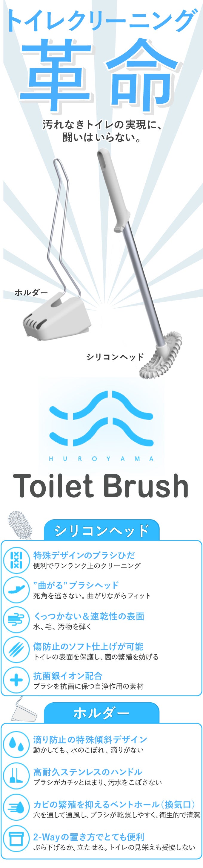 HUROYAMAのトイレブラシは、「シリコンのブラシヘッド」と「ホルダー」で構成されています。