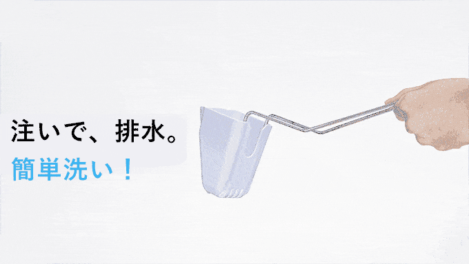 ホルダーは計算された傾斜角をもつ構造によって、ホルダーから液体がこぼれないように収めることができるので、水が溢れたり、床を汚さずにすむのです。