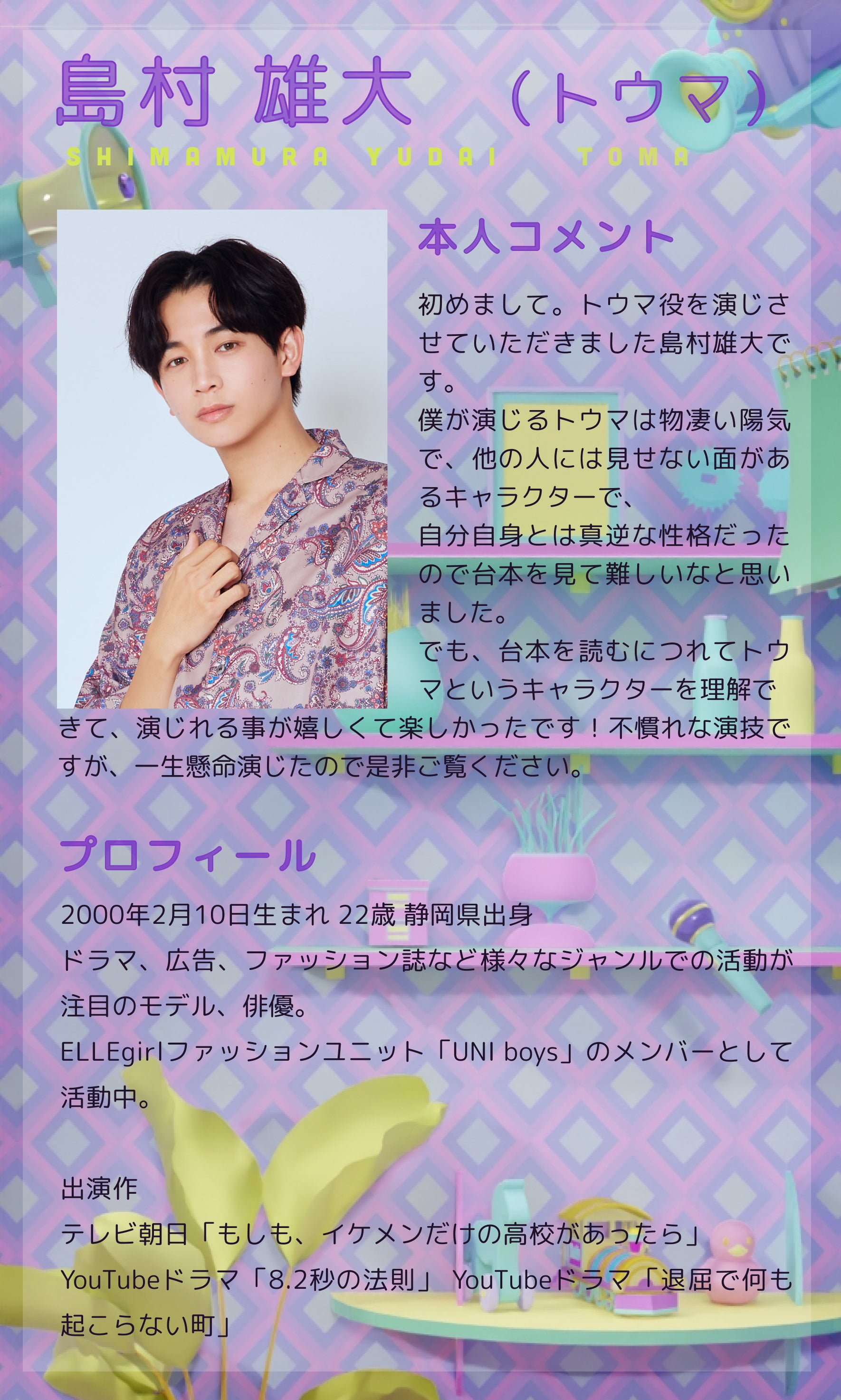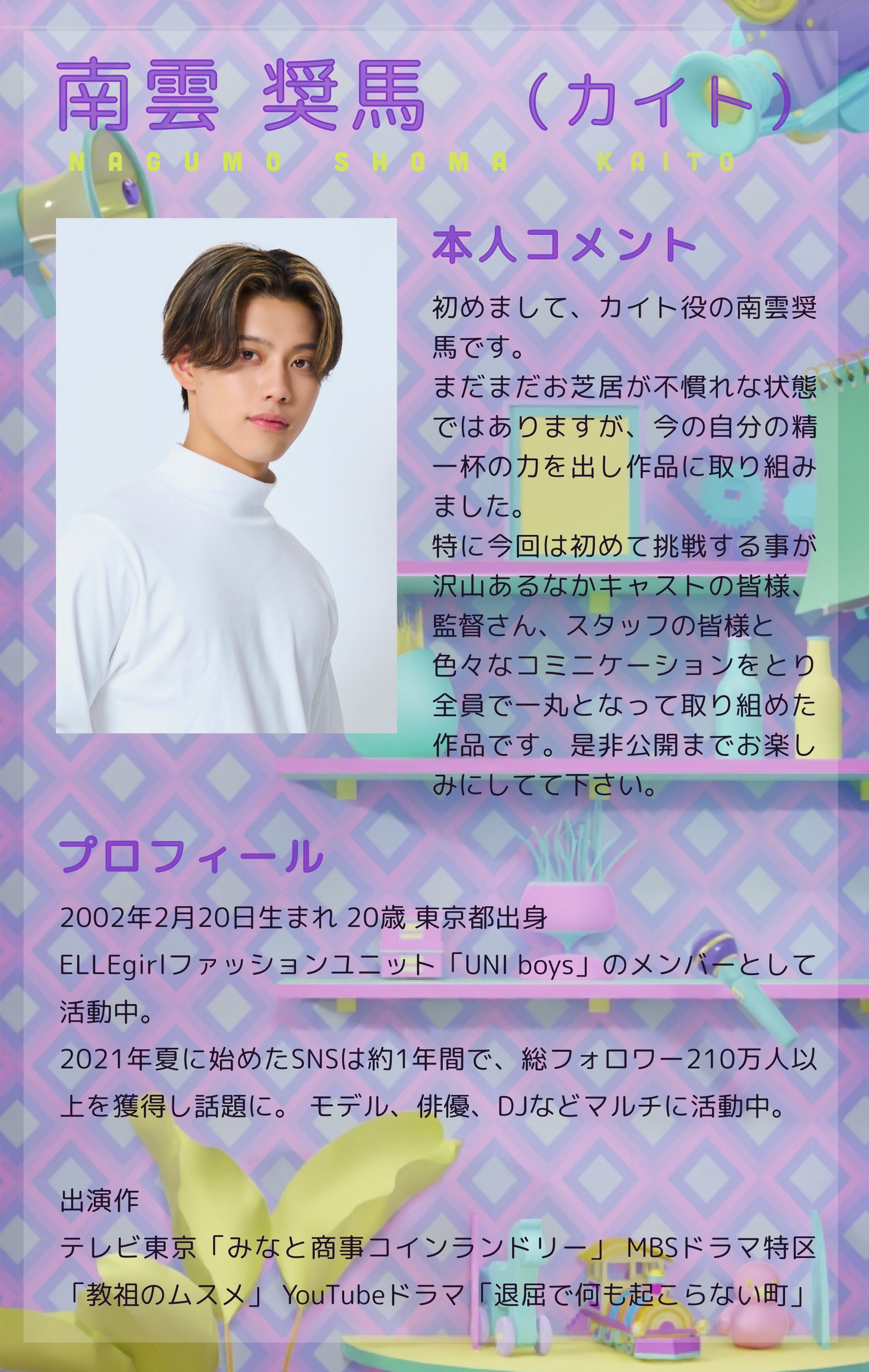 共演者には、同世代のモデルやインフルエンサー、俳優の卵、アイドルなどがズラリ。こんなメンツの中、なんで私が選ばれたのか?と不安になりながらも、推しのモデル・カイトの存在に舞い上がるユナ。