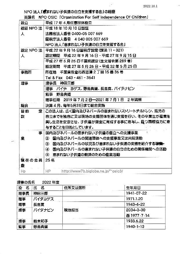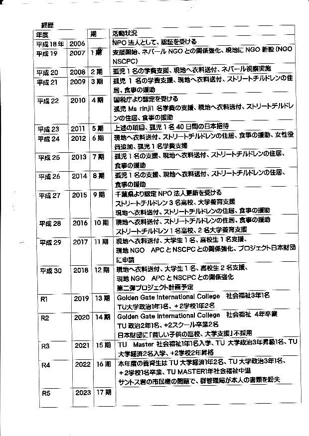 我々の組織は理事6名で構成され、2名がネパール人、 そのうち1名Mr Nabinが現地法人NSCPCの責任者を, しております、理事会は頻繁に行い、ネパールには,