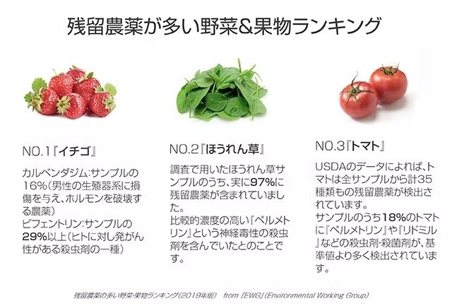 野菜や果物を手洗いする場合でも、付着した化学物質や農薬の除去ができないと言われています。