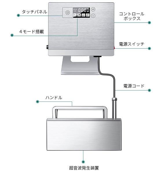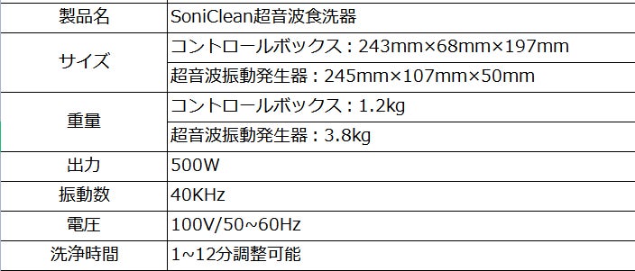 SoniCleanは500Wのパワフルな超音波を発生させ、毎秒40,000回振動で水中に数千もの超微細な気泡を作り出し、