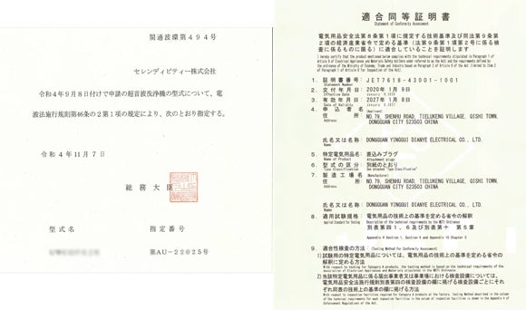 更にSoniCleanは日本の電気用品安全法と電波法に適合した製品で,PSE認証と型式認定を取得していますので