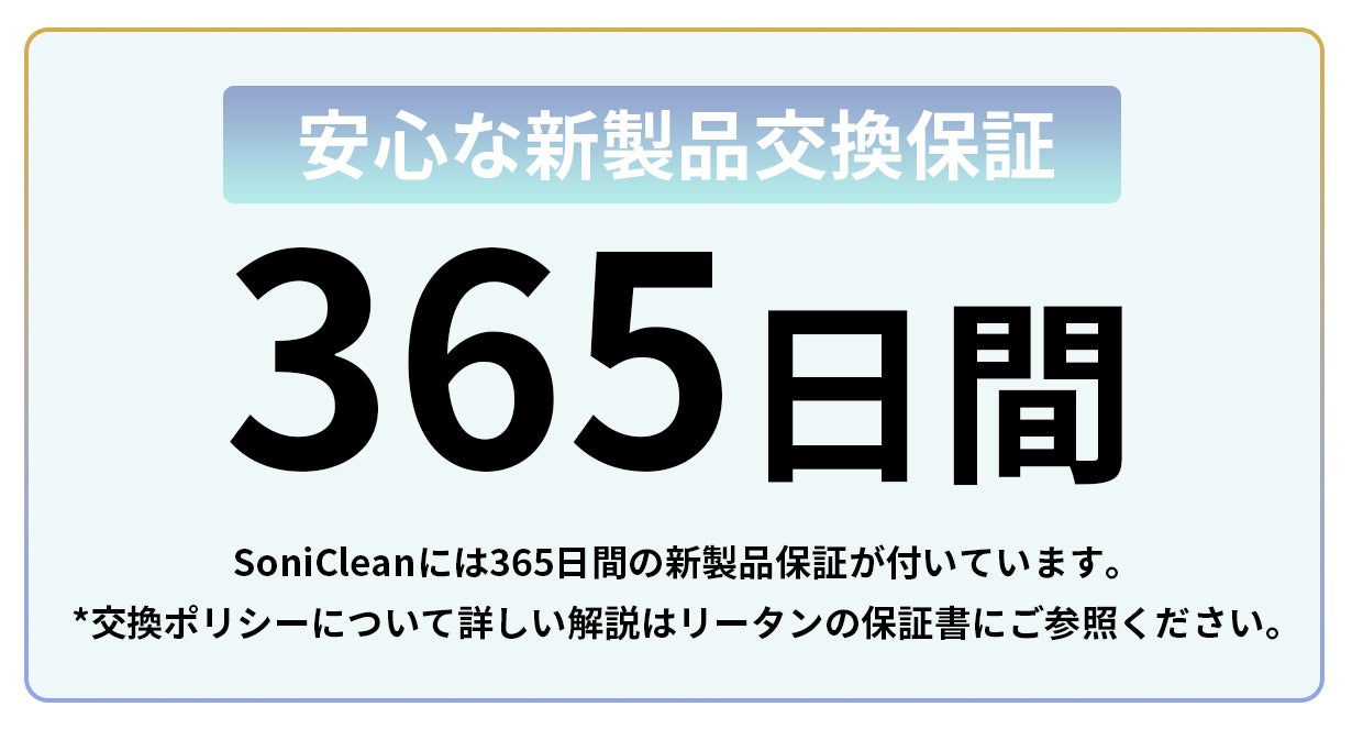 SoniCleanはメーカーにより、1年間の製品保証が付き、初期不良(お届け2ヶ月内)の場合は
