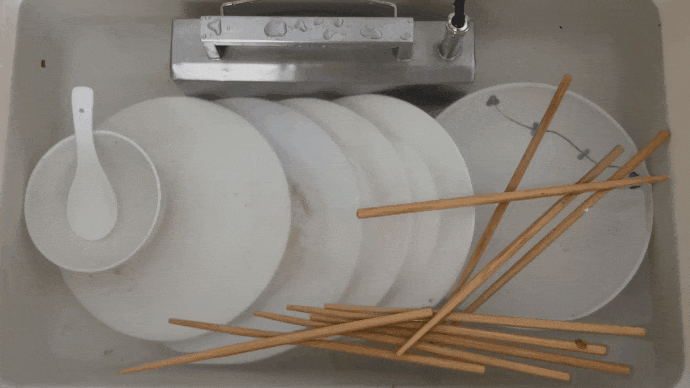 予洗いも皿並びも必要なしです ! つけ置くだけで洗浄開始され、食洗器の詰まりになる
