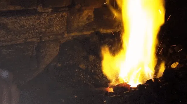 【Maserin Nimrod】のブレードは一般的な西洋ナイフにみられるインゴットからの削り出しではなく、火にくべながら鍛造を繰り返す焼き入れで製造。