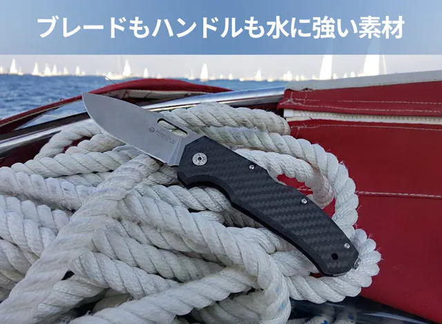 【Maserin Nimrod】はブレードもハンドルも水に強い素材なので、釣りで使うフィッシングナイフや、ヨットセーリングには欠かせないセーリングナイフとしても使えます。