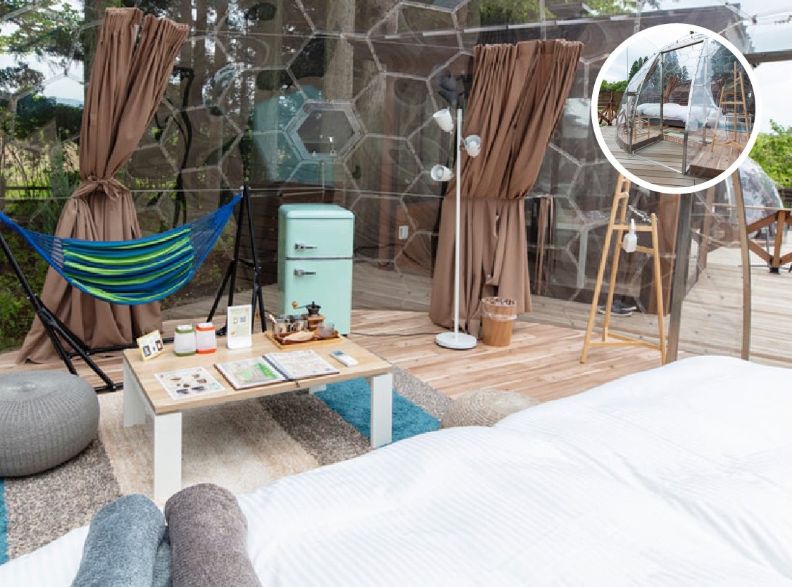 非日常感を味わえる360度透明の煌びやかなドーム型テント。