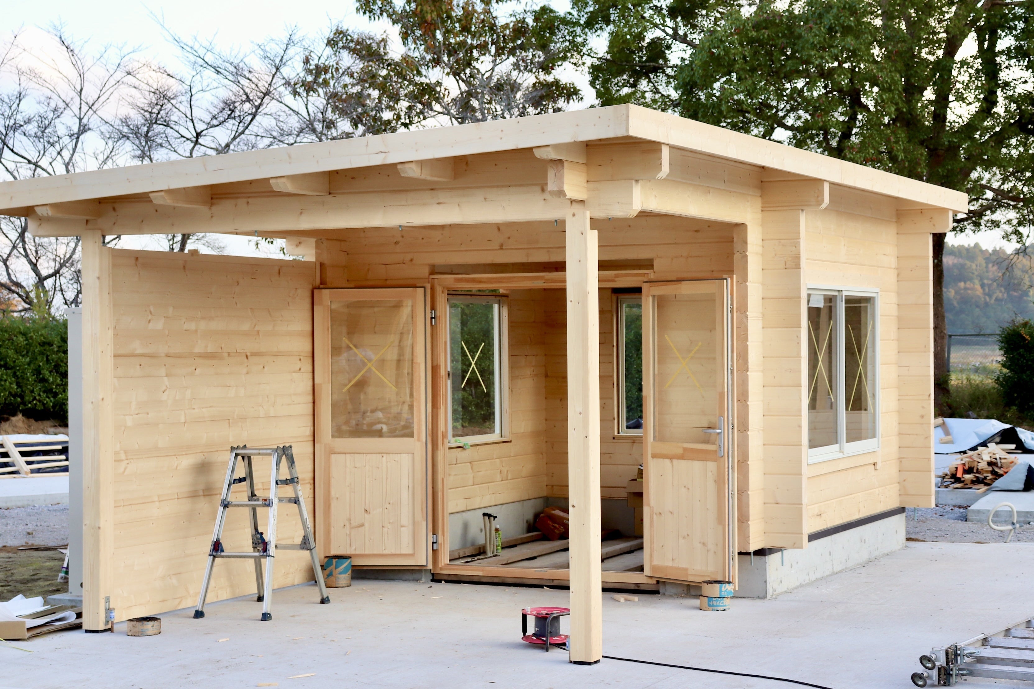 BBQハウスとなるこのログハウスは、北ヨーロッパのエストニアから輸入しています。