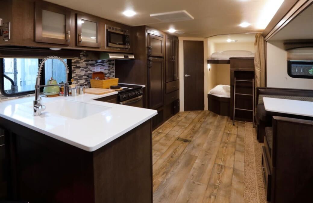 トレーラーハウスはフルサイズボディのアメリカンキャンピングトレーラー。