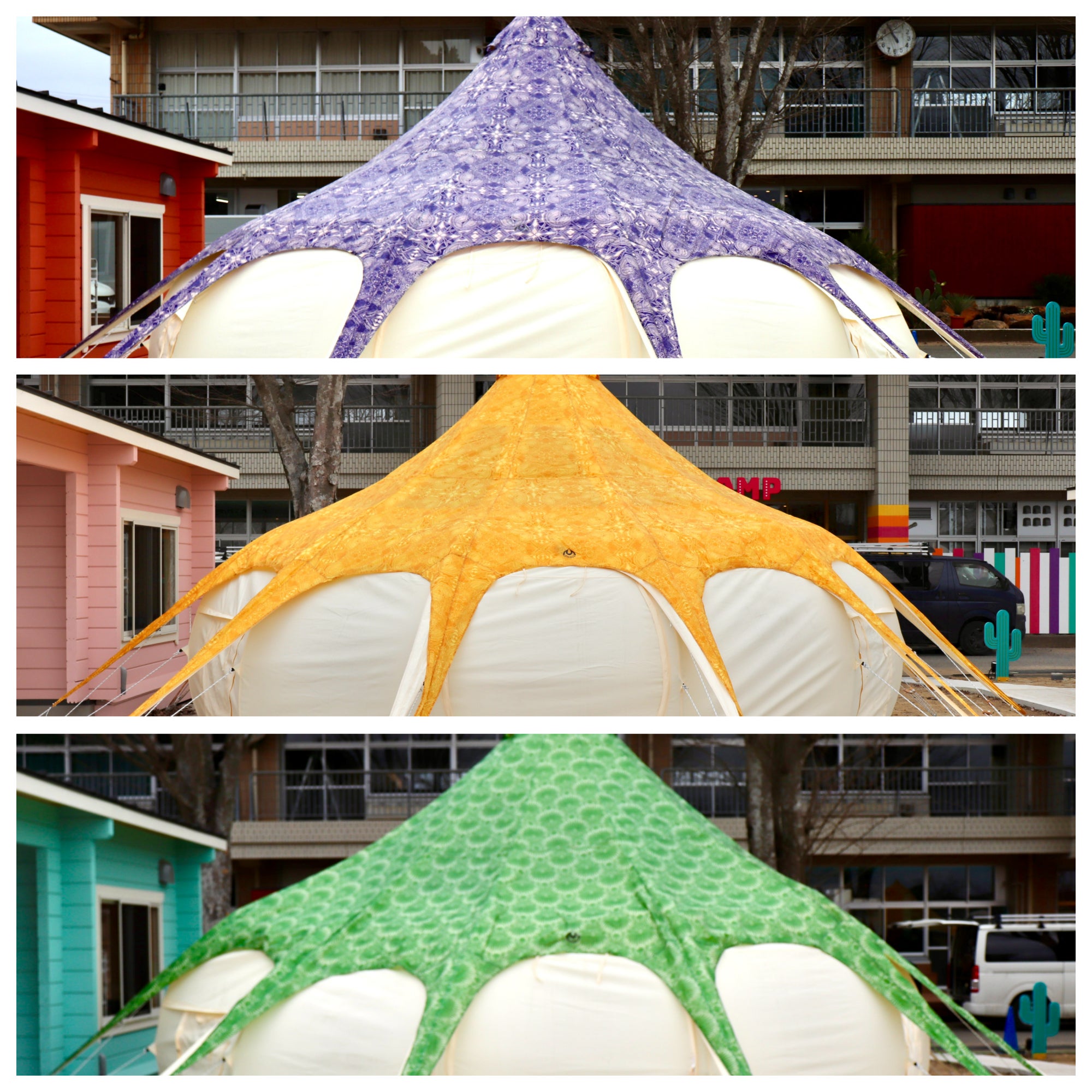 カラフルなテントが校庭に並び、目を惹きます!