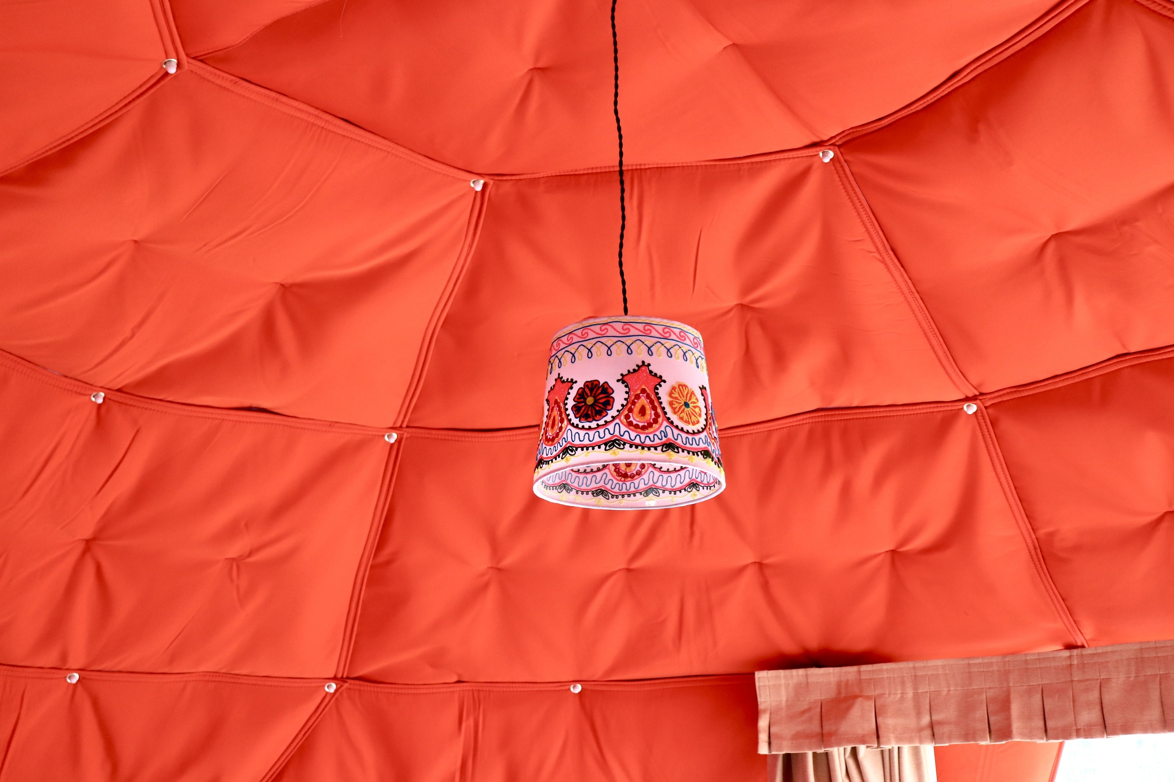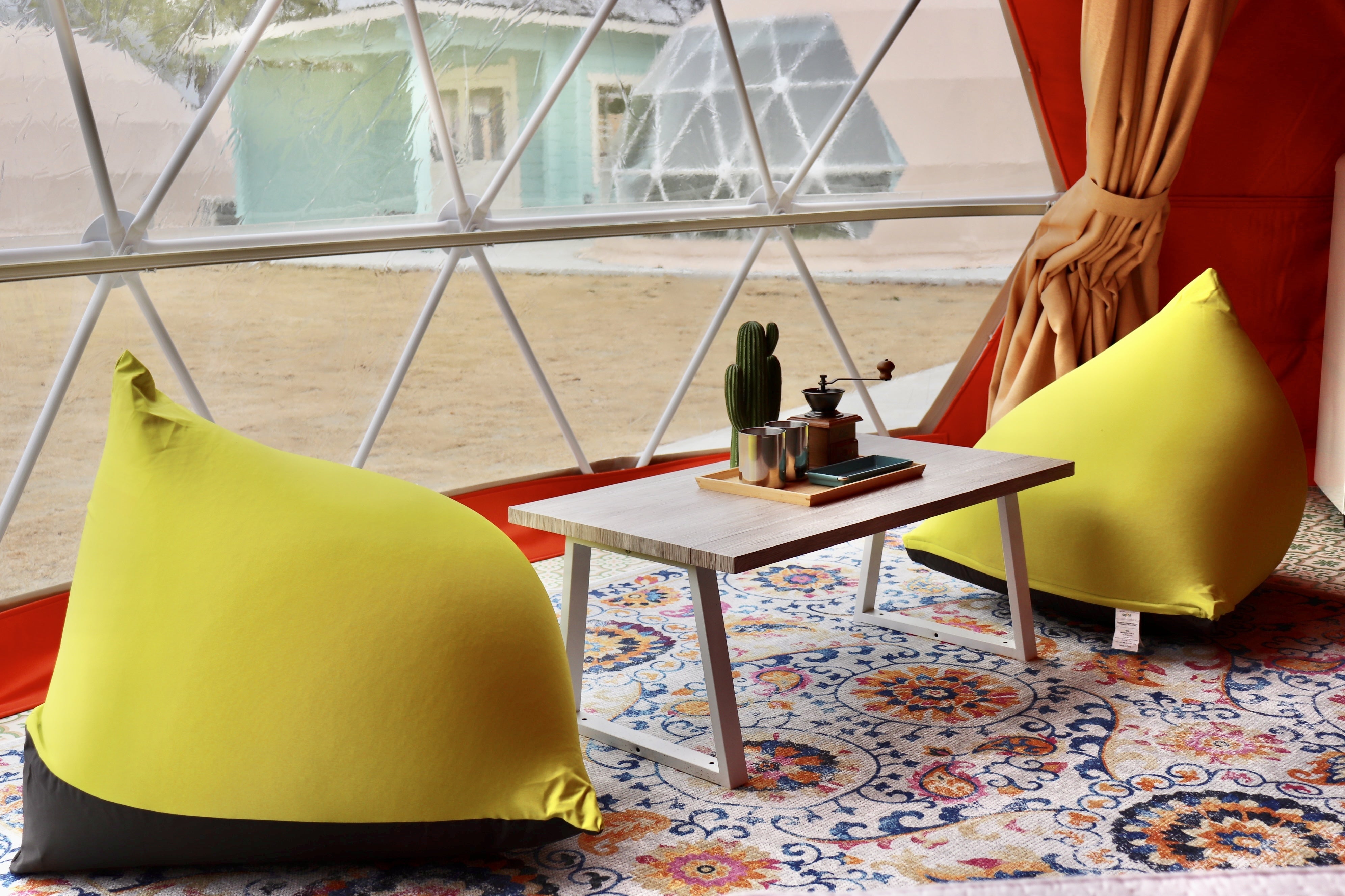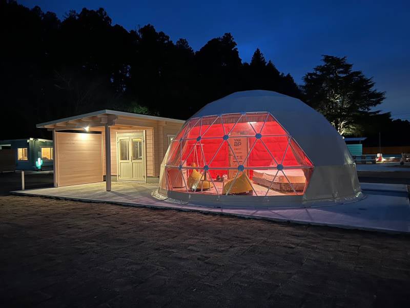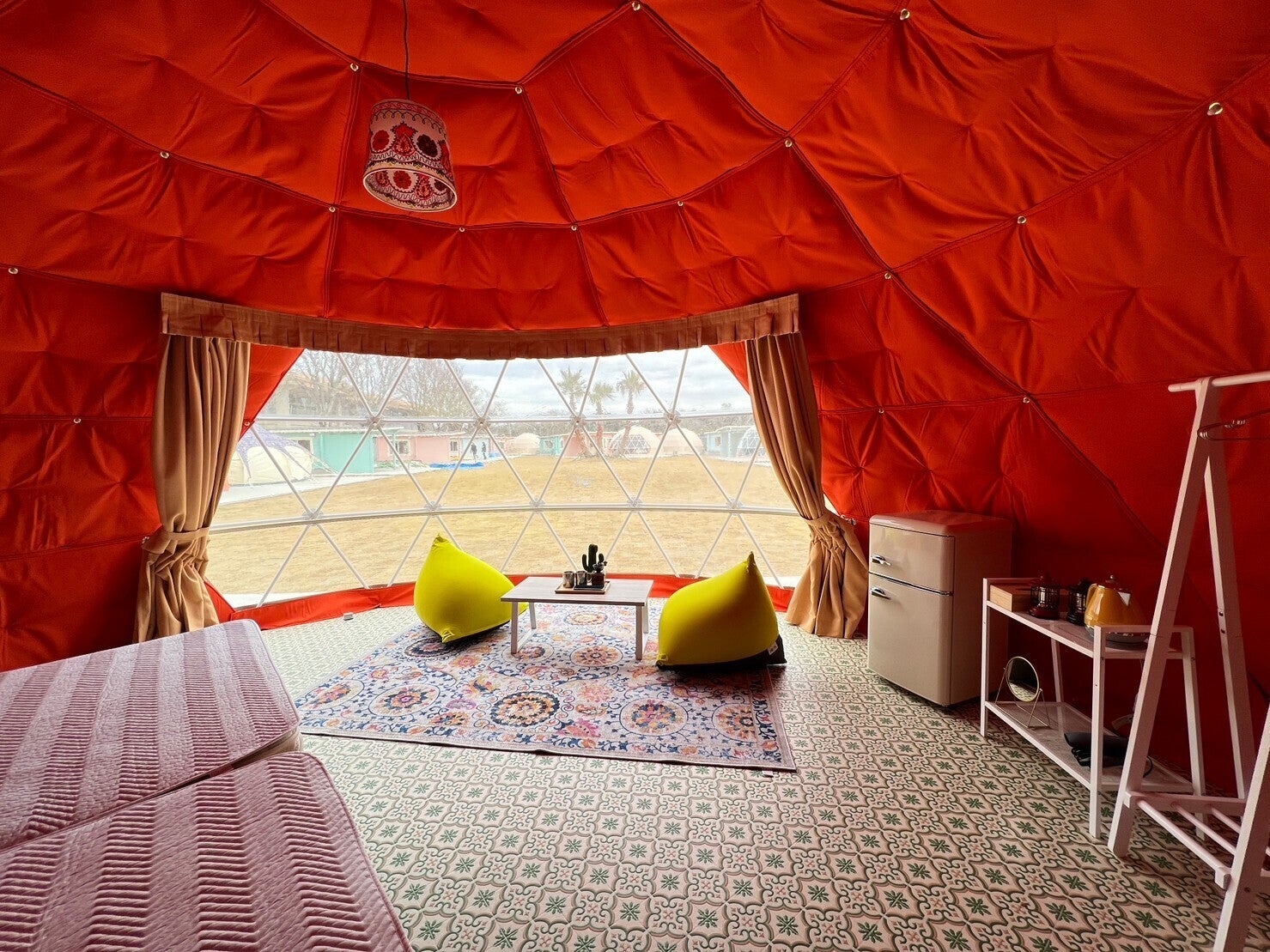 今回はグランピングの宿泊テントである『ドームテント』の内装が完成したのでご紹介します!