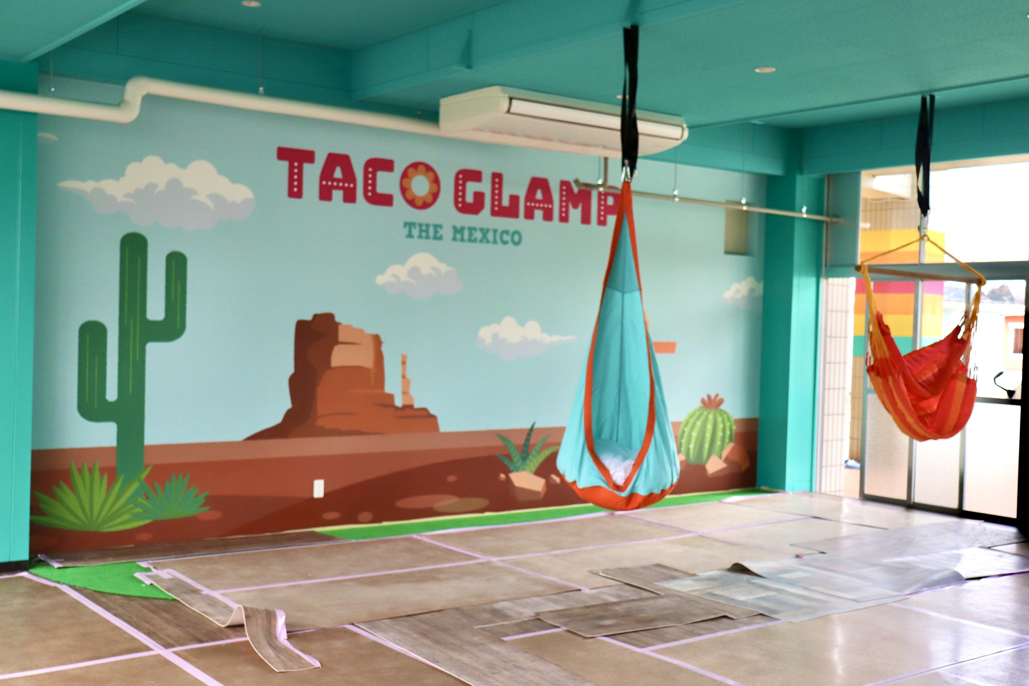 鮮やかな色で彩られたロゴやメキシカンなデザインがみなさんをお迎えします!