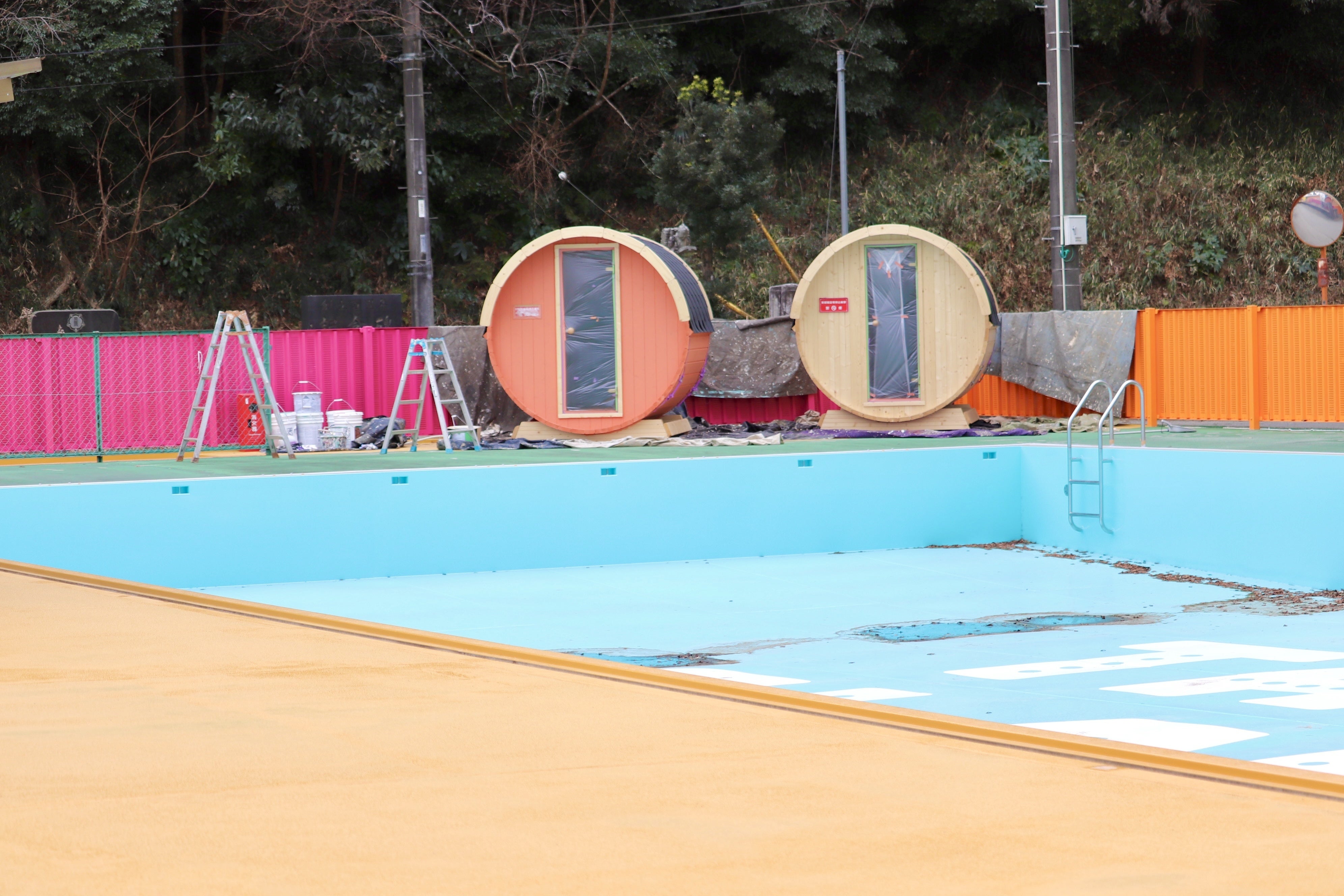 ¡Hola!TACO GLAMP広報の山本です。お待ちかねです!バレルサウナが入ってきました!バレルサウナはグランピングでもキャンプでも、TACO GLAMPにチェックインされたお客様はどなたでも無料で入れます!TACO GLAMPは屋外でのサウナを味わえる特別な場所です。樽型のサウナで、ととのってください♪プールには「TACO GLAMP」のロゴが。そして、プールサイドにはチェアが置かれます!サウナで熱くなった体をプールやシャワーで冷まして、外の風を浴びながらととのうことができますよ。プールへの階段にはメキシコタイルでアクセントを。派手で可愛いTACO GLAMPが徐々にできてきました!次の報告をお楽しみに~!