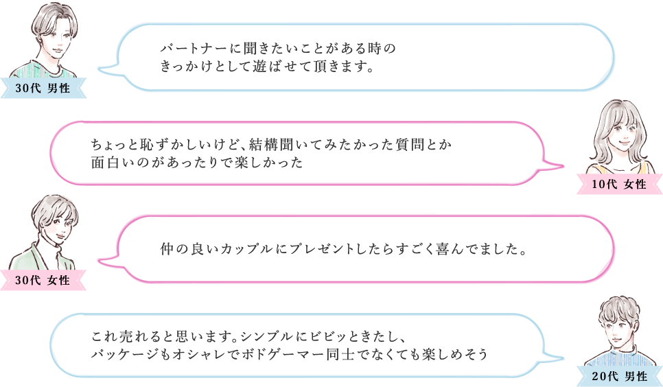 質問カードはライトな質問から少し真面目な質問などカップルや夫婦の方々が、