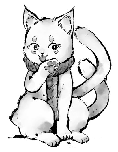 お歯黒べったりの小さな相棒。外国語を話すのが好き。お歯黒べったりを信頼していて、いつも彼女の肩に乗っている。