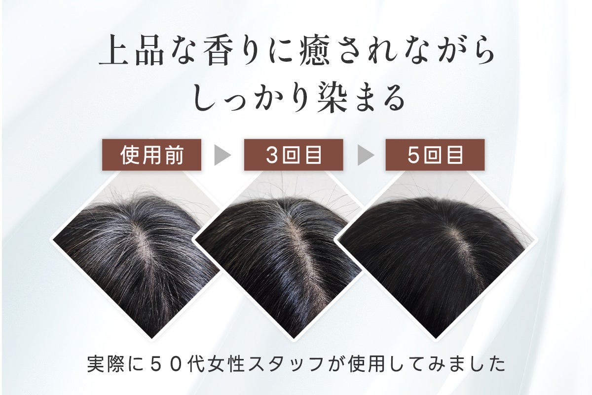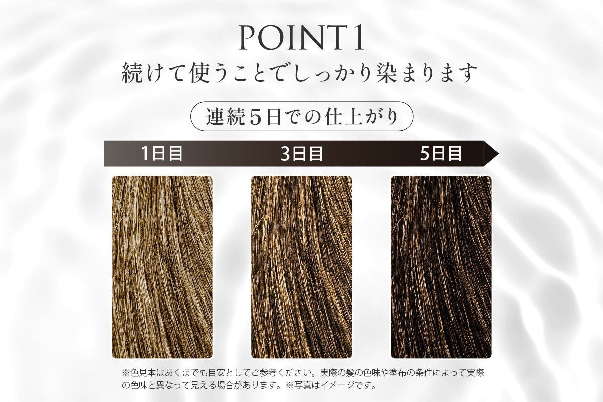 連続5日での使用で、しっかり染まります(髪表面に着色すること)。