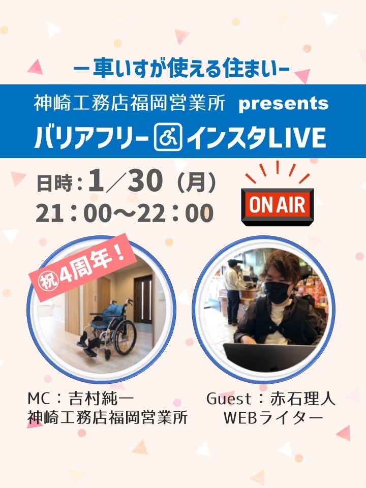 明日は、当プロジェクトでも応援メッセージをいただいている神崎工務店さん主催のインスタライブです。