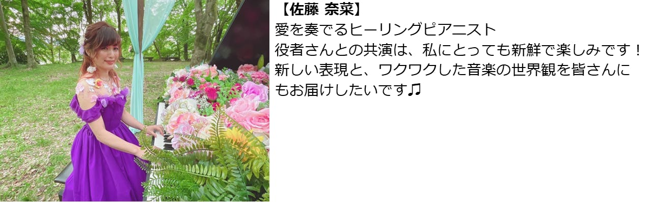 「生音魂役者魂musicaction開催おめでとうございます。東京での公演を拝見させていただき"優しさ"と"強さ"そして"美しさ"を感じる体験が出来ました。名古屋で音楽×演劇が持つ力を届けられるよう応援しております」