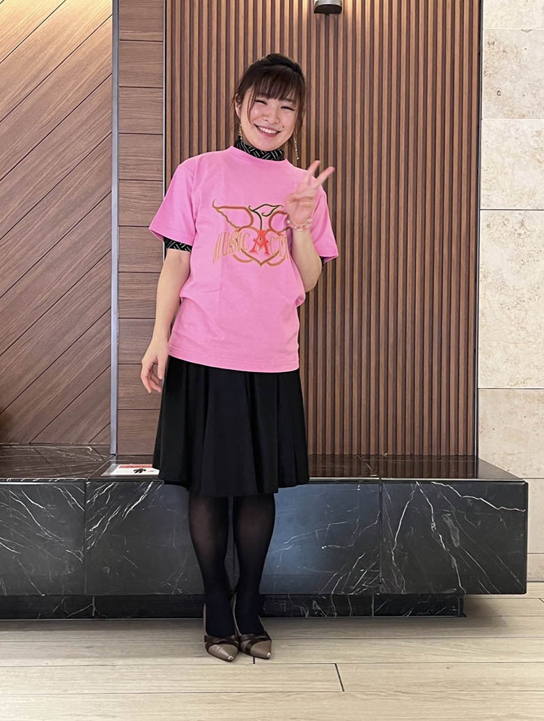 Tシャツができました!!!佐藤奈菜さんとトヨピさんに着ていただきました。お二人とも本当によく似合ってますね。佐藤奈菜さんが着ている、ピンクのMUSICACTION Tシャツは黒もあります。トヨピさんが着ている黄色のayuiさんTシャツは白とターコイズブルーの3種類になります。どちらの種類も大須演芸場にて数量限定で販売させていただきます。皆さんもぜひお買い求めくださいね!